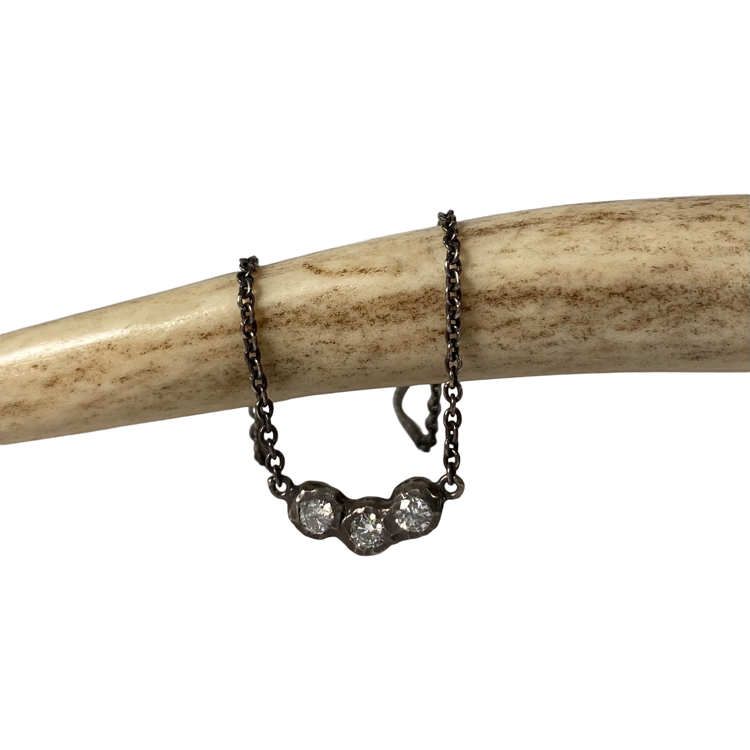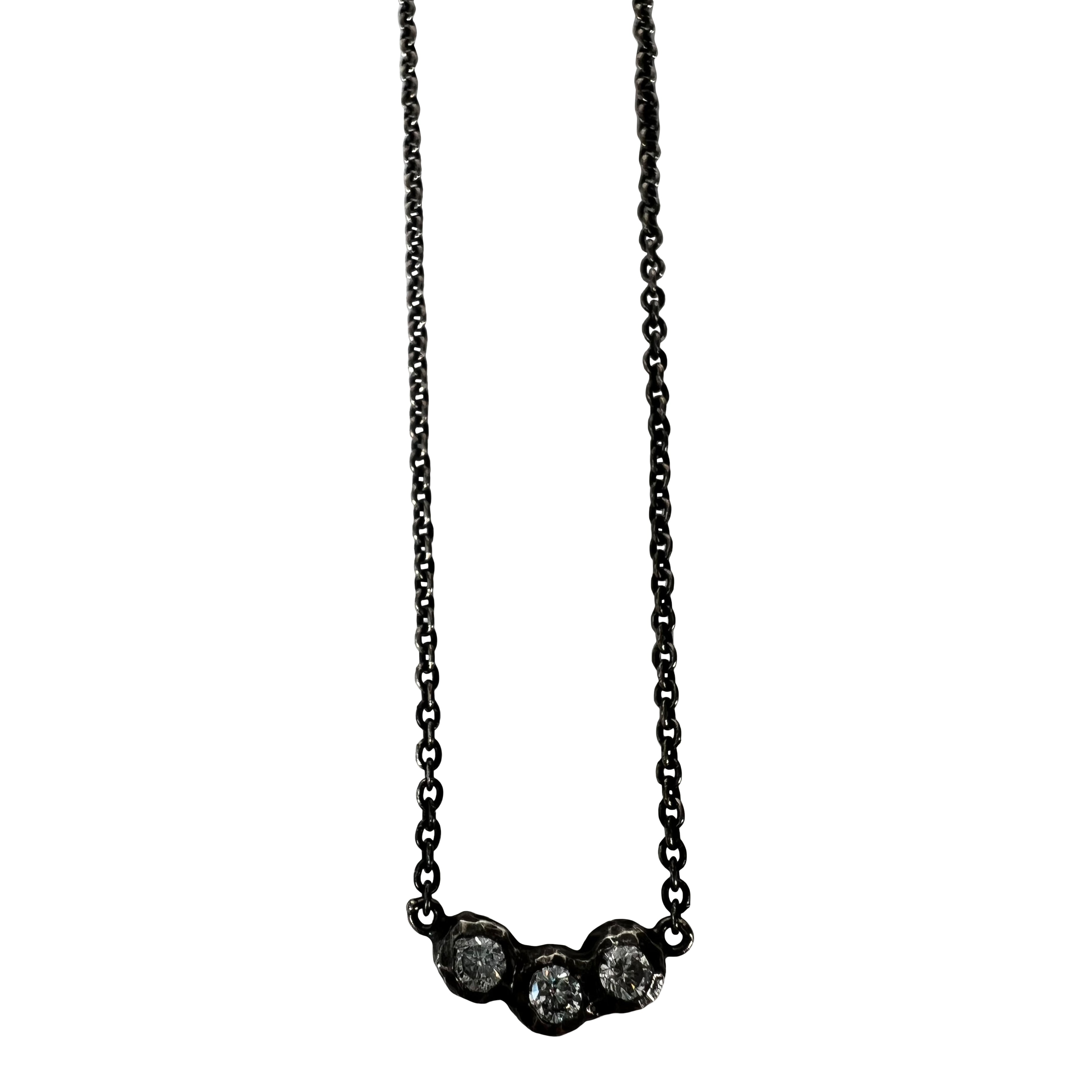 Oxidized Sterling Silver Necklace With 3 White Diamonds