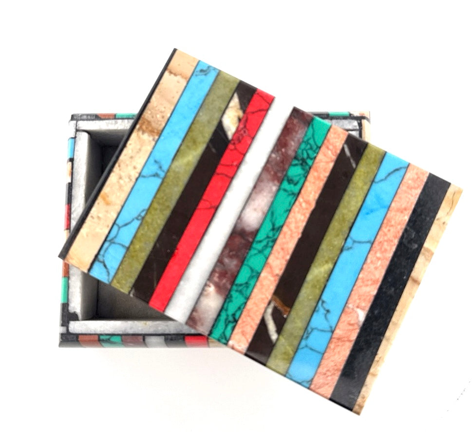 One of a kind hand made marble (and turquoise) box from Afghanistan