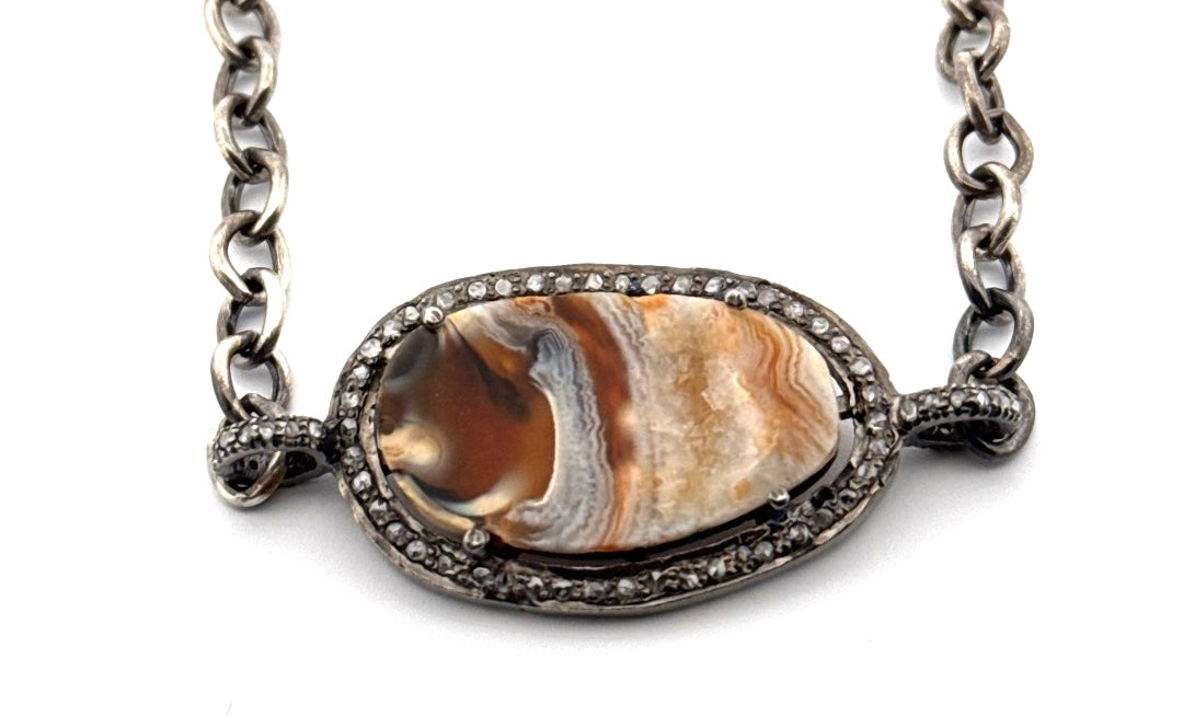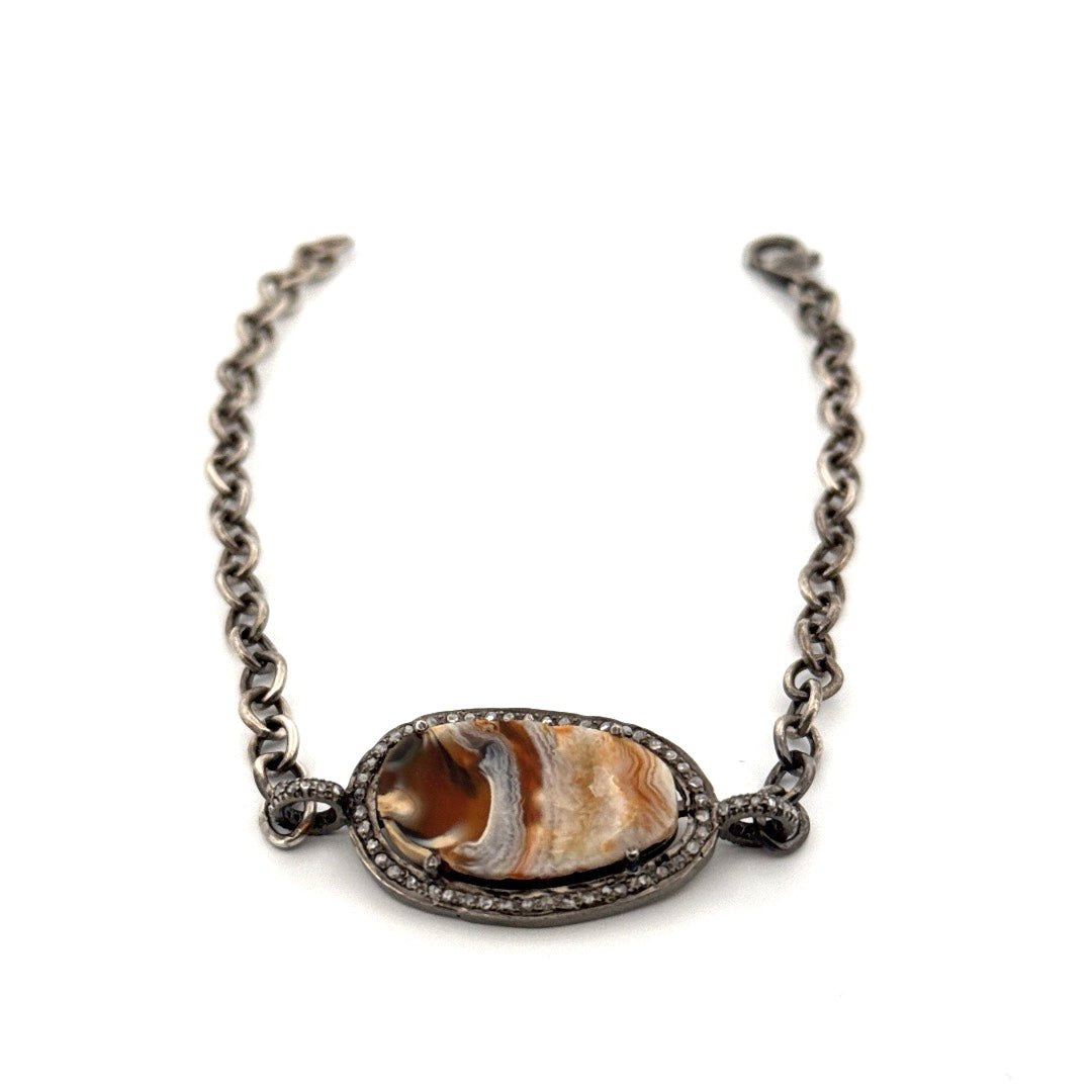 Oxidized Sterling Silver and pave white diamond agate bracelet.