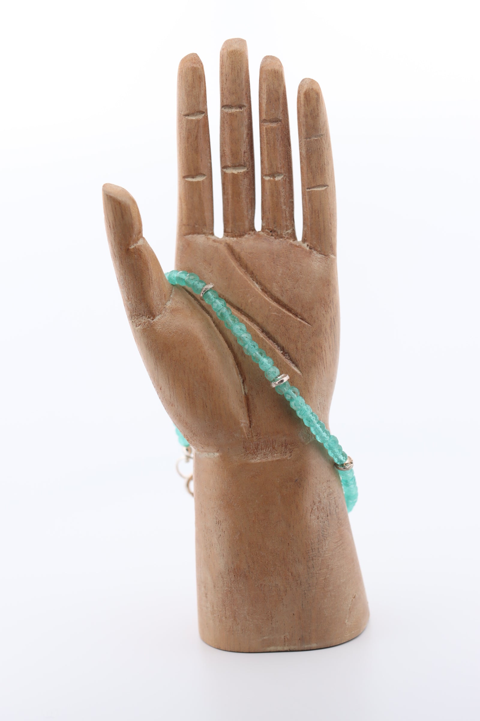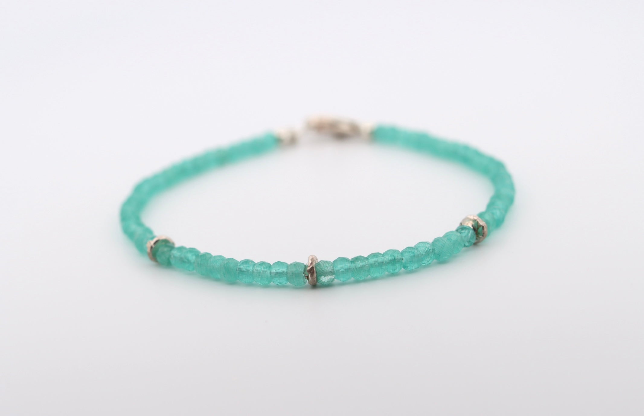 Facetted apatite cube beads with hand casted sterling silver spacer beads and sterling silver clasp.