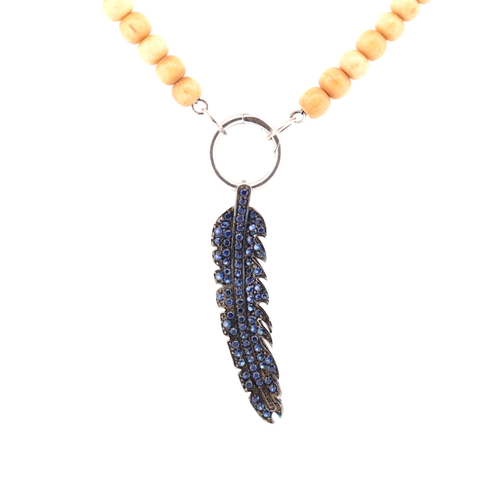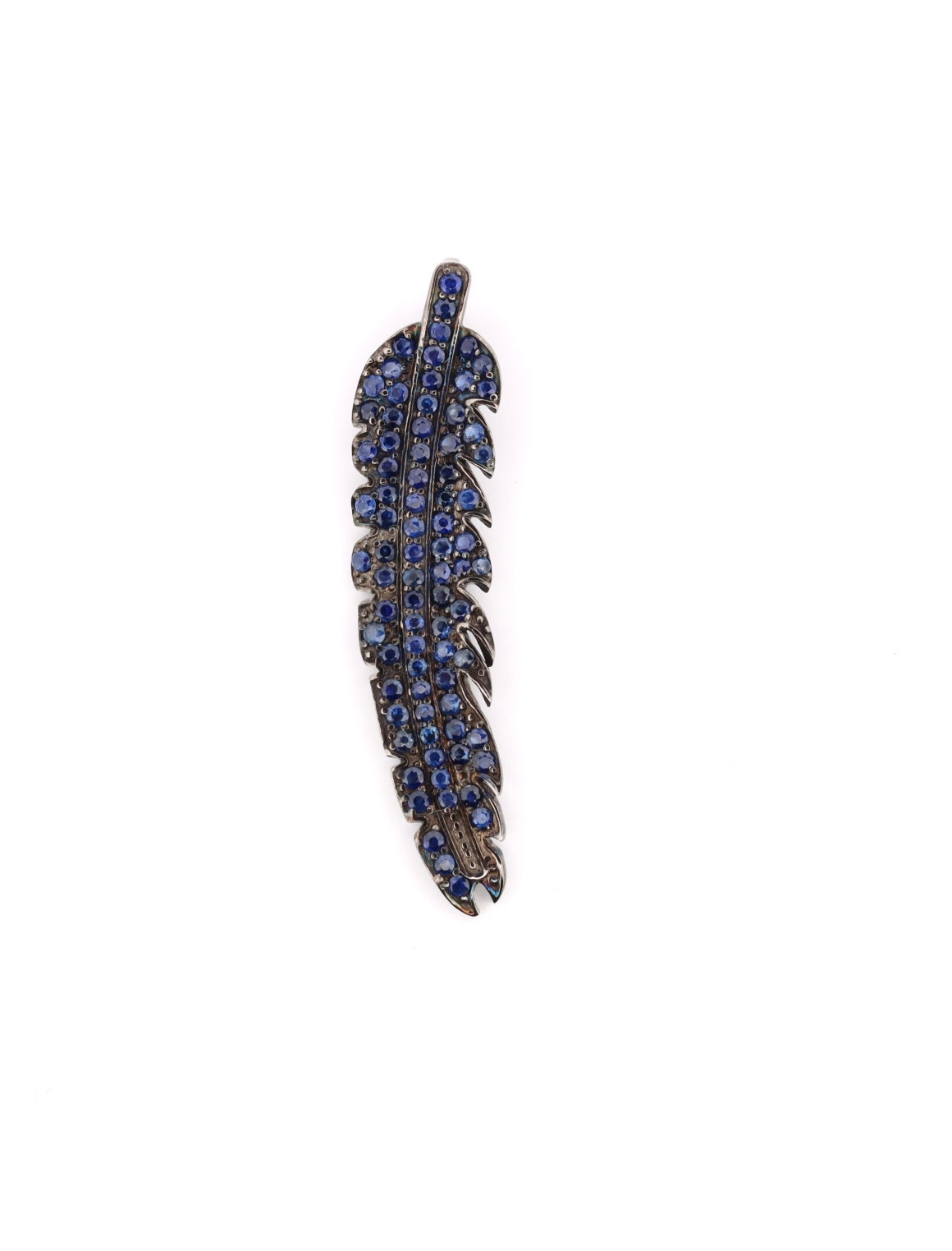 Oxidized sterling silver and pave blue sapphire feather pendant