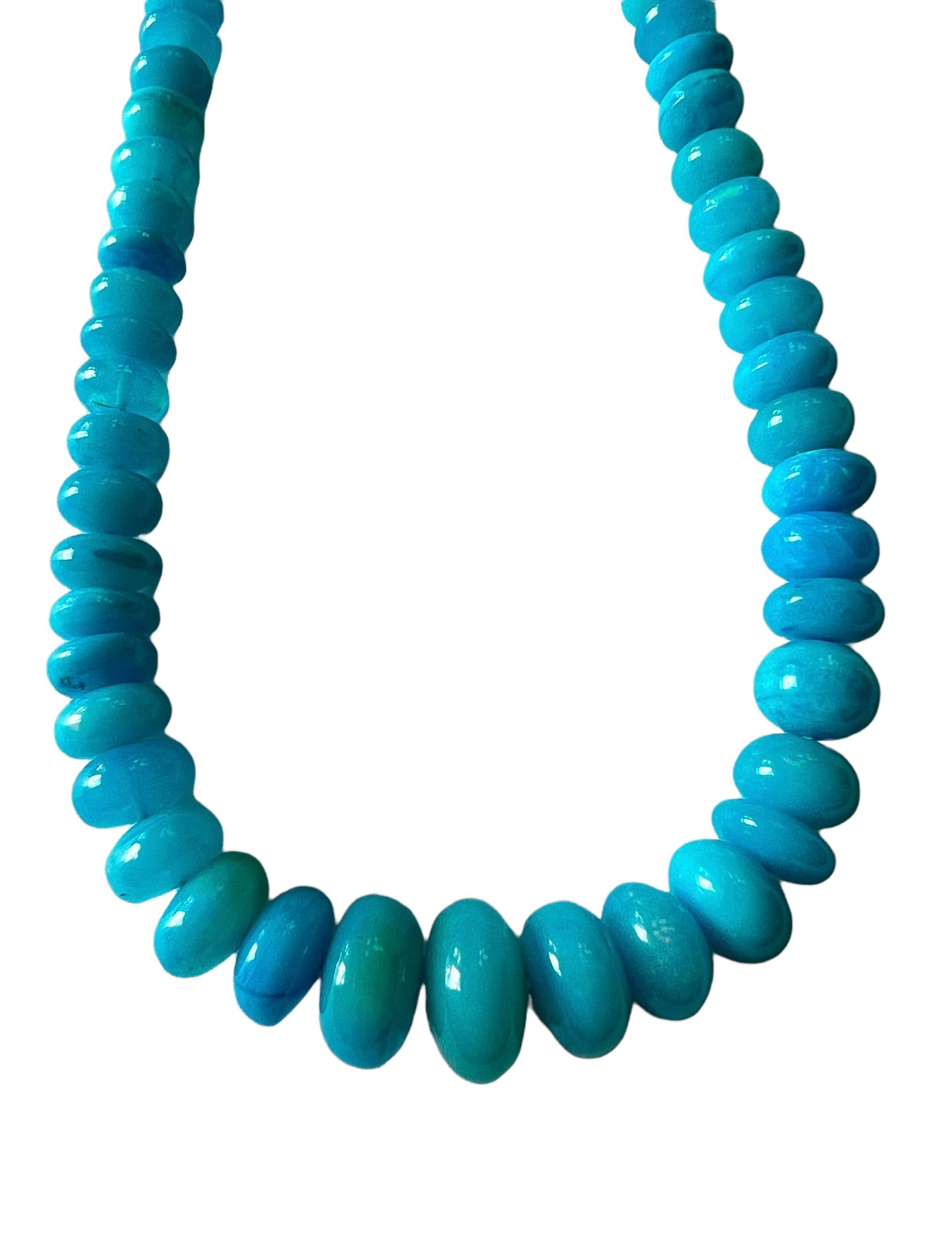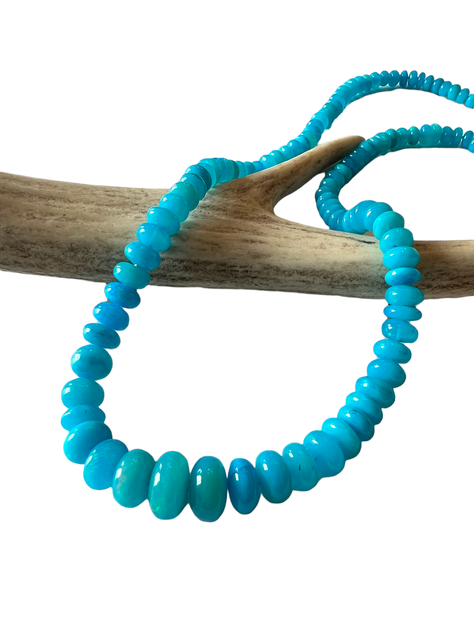 Smooth blue opal beads hand knotted on silk