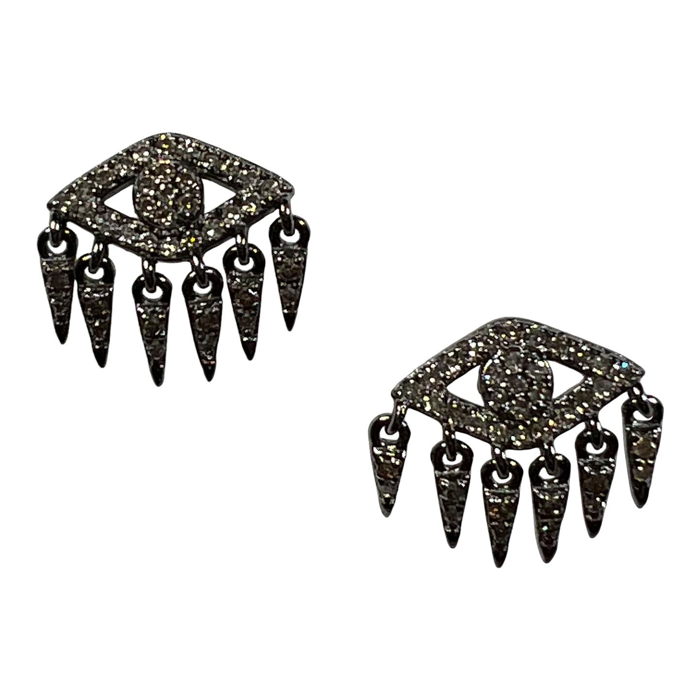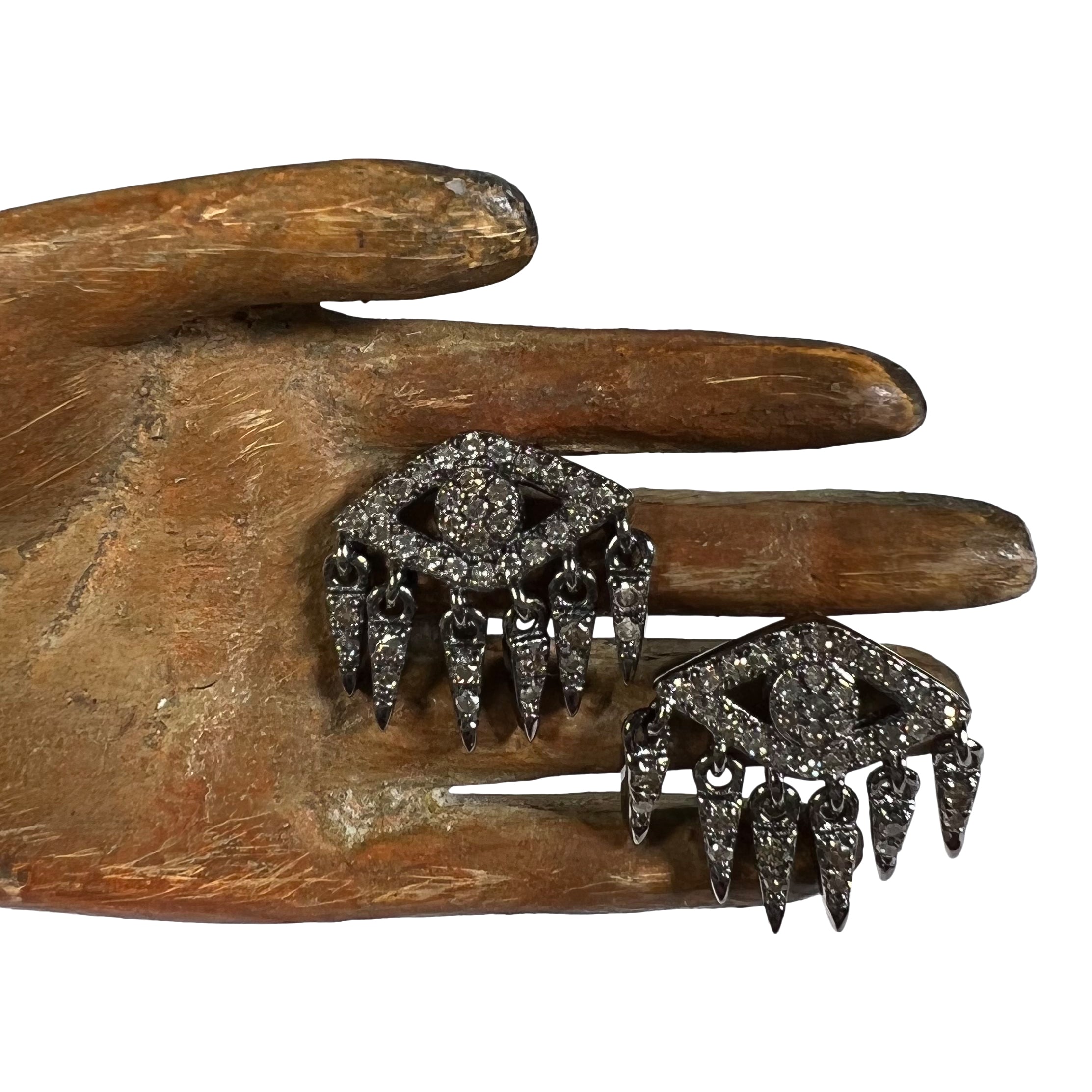 Oxidized Sterling Silver And White Pave Diamond Dangle Eye Post Earrings