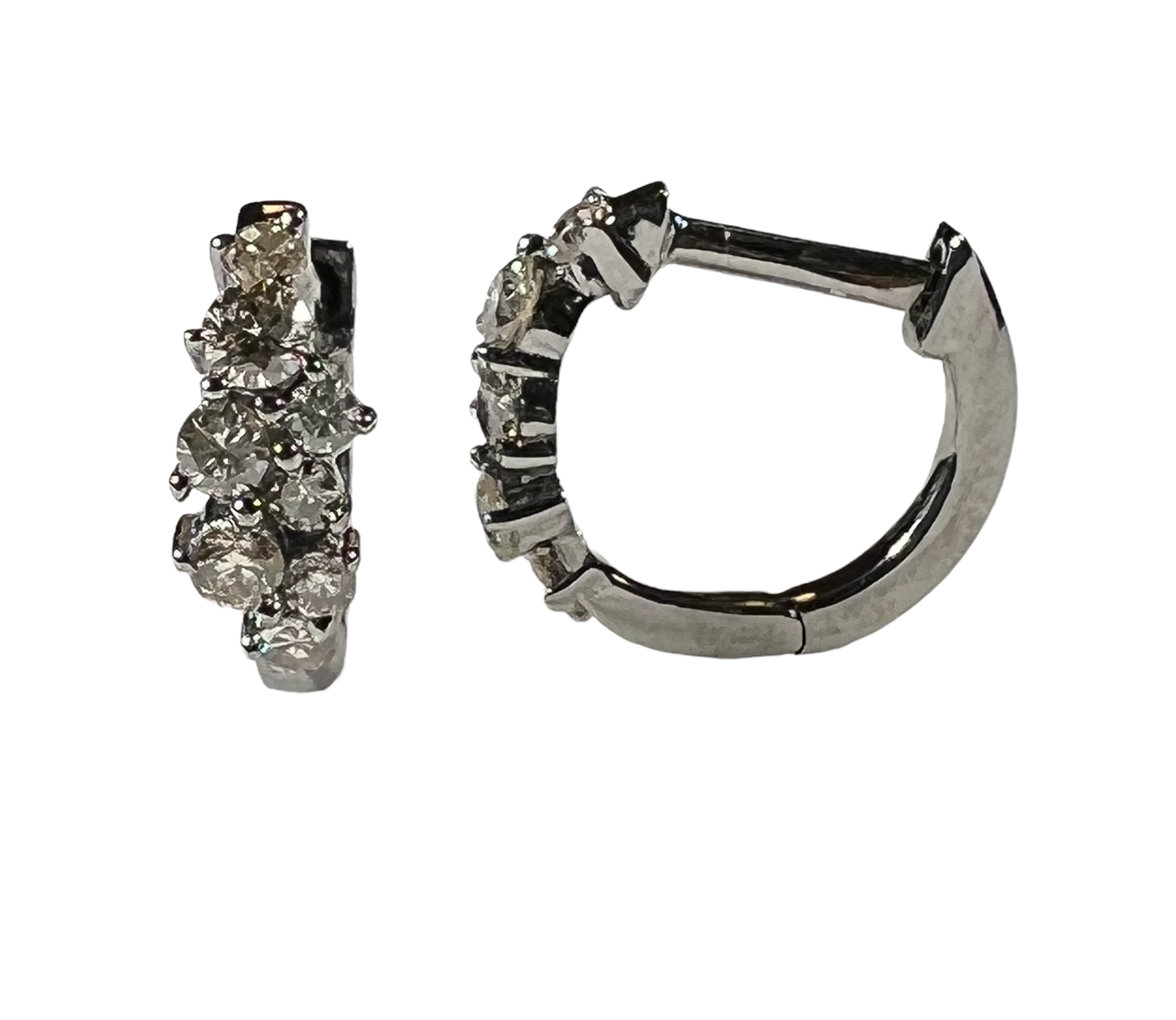 Oxidized sterling silver diamond cluster huggie hoop earrings