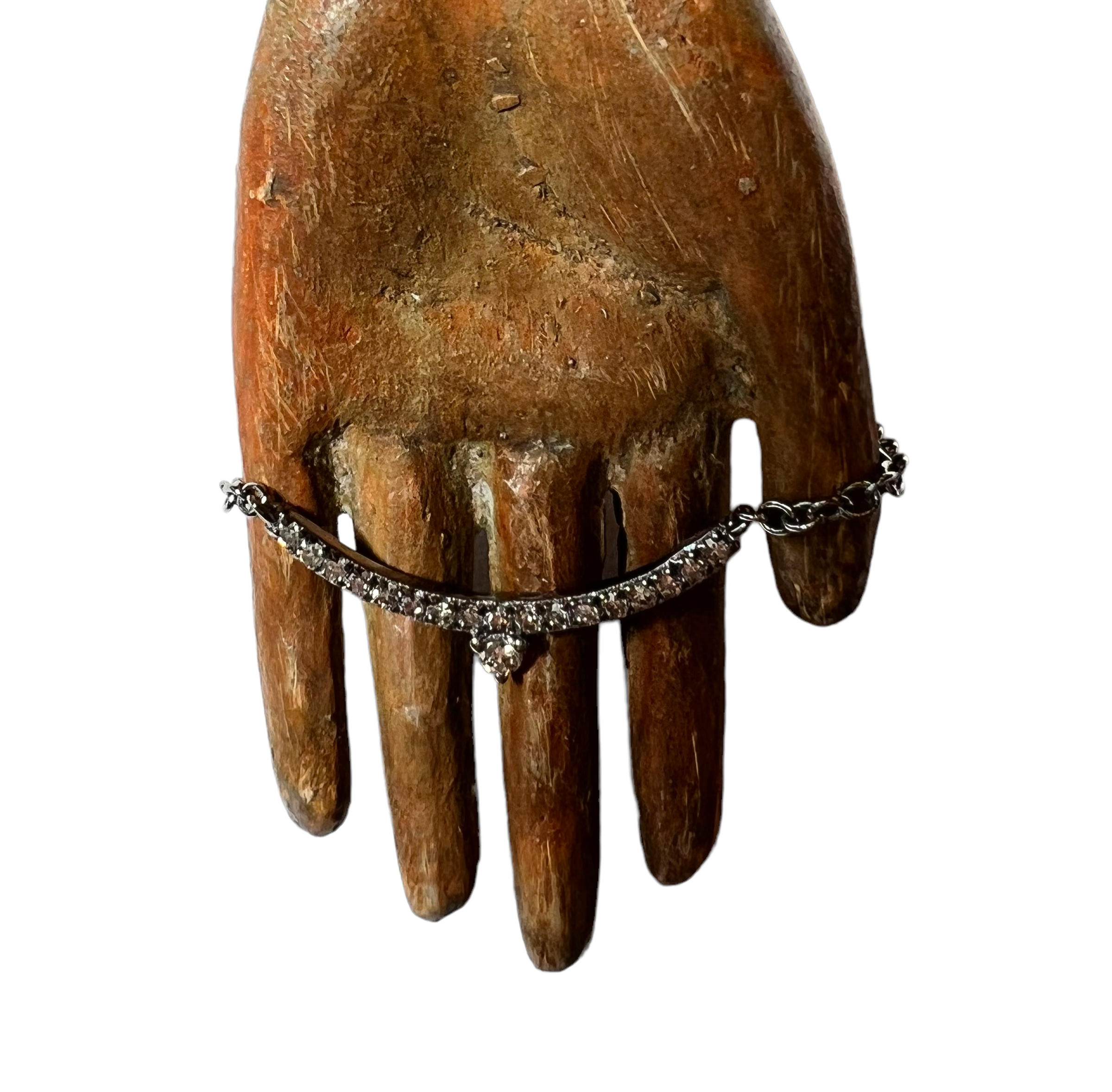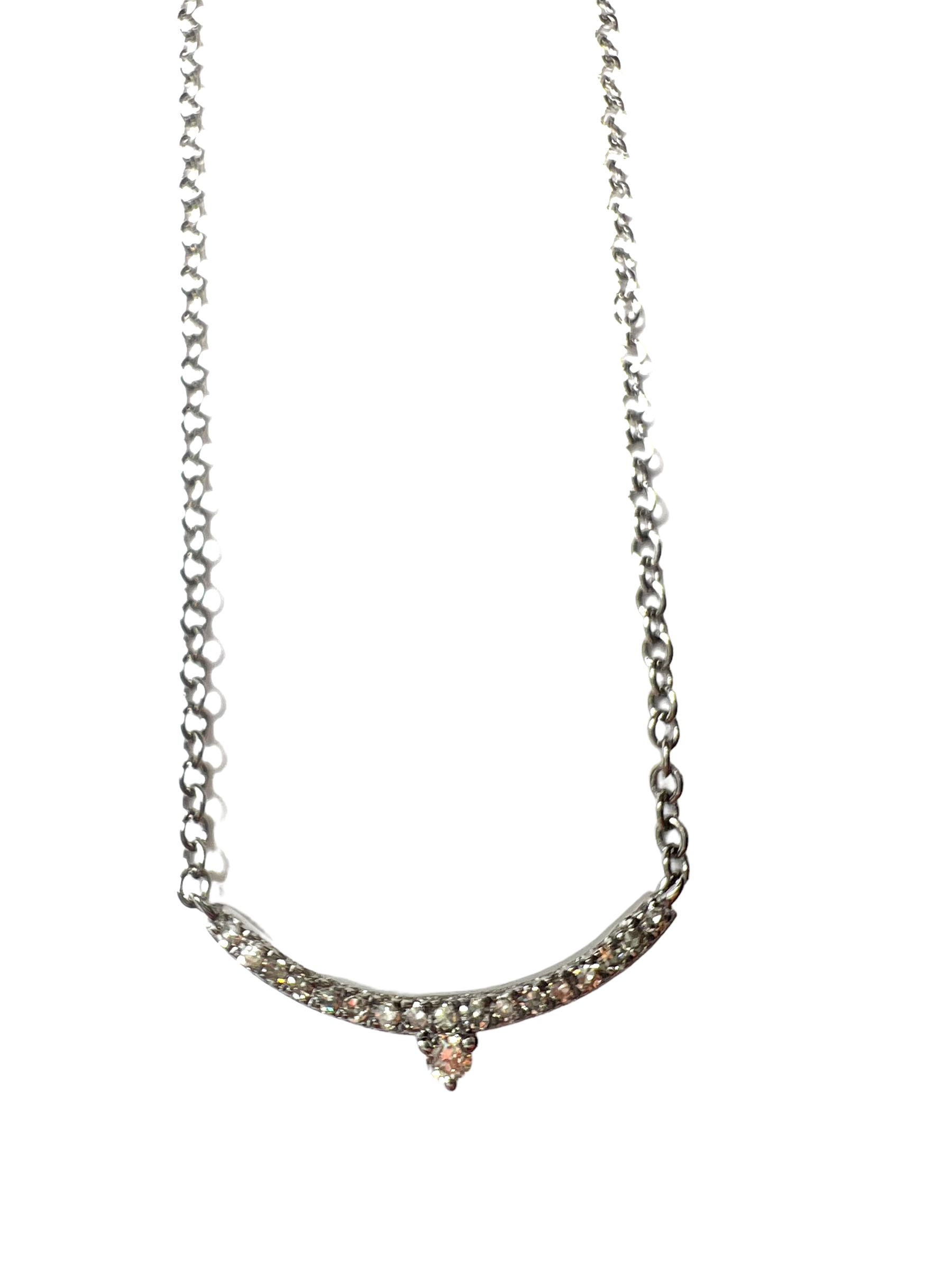 Oxidized sterling silver and white diamond curved bard necklace