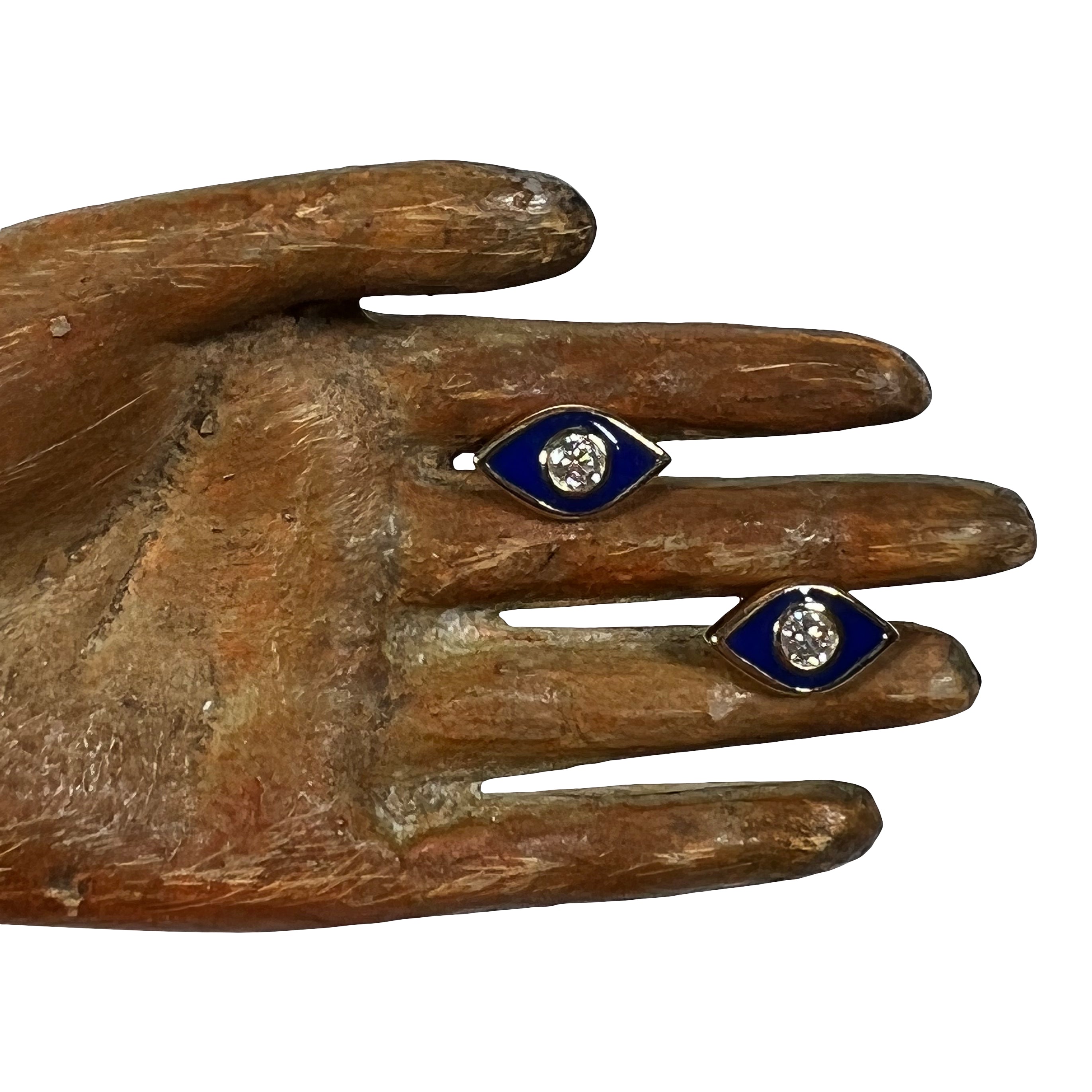 14k Yellow Gold Navy Enamel And White Diamond Eye Stud Earrings