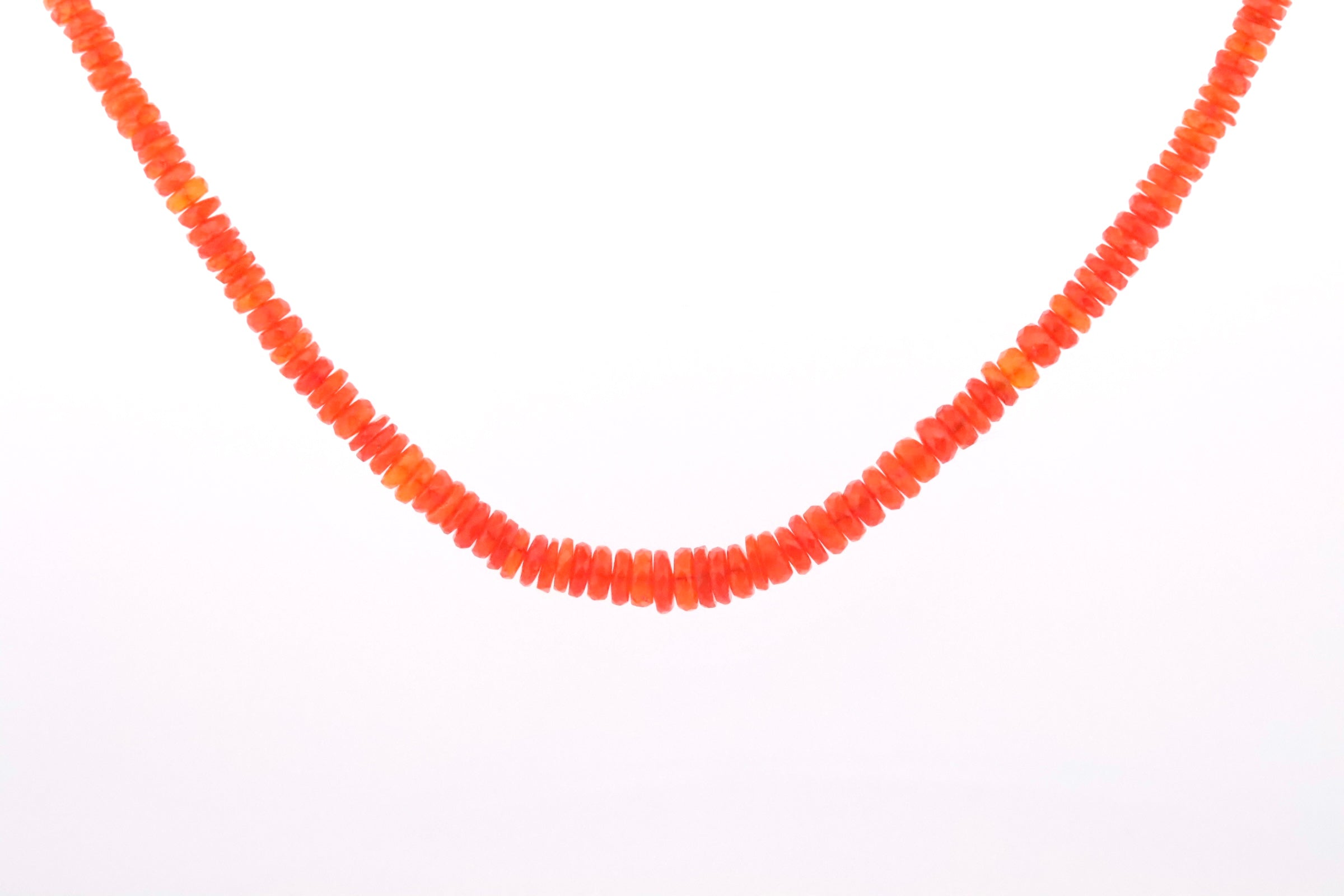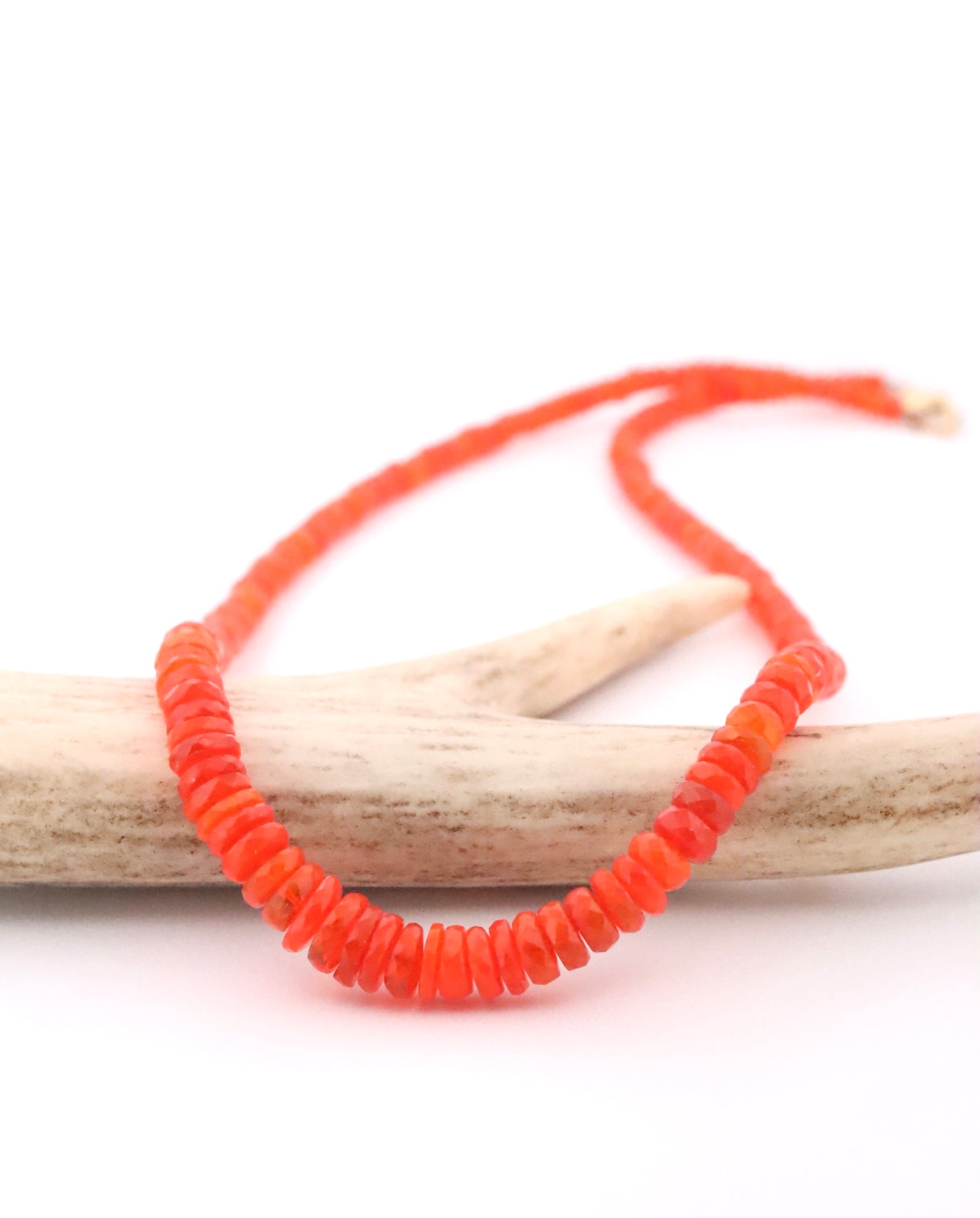 Faceted heishi fire opal beaded necklace with 14k yellow gold clasp