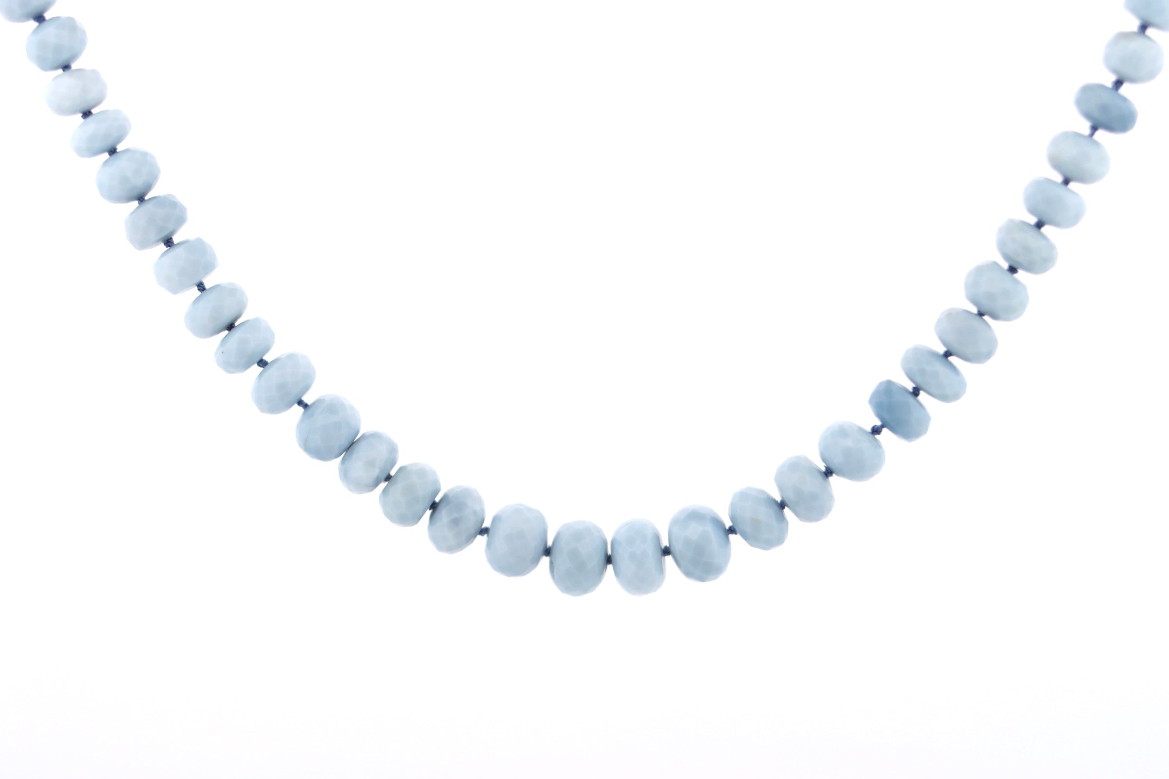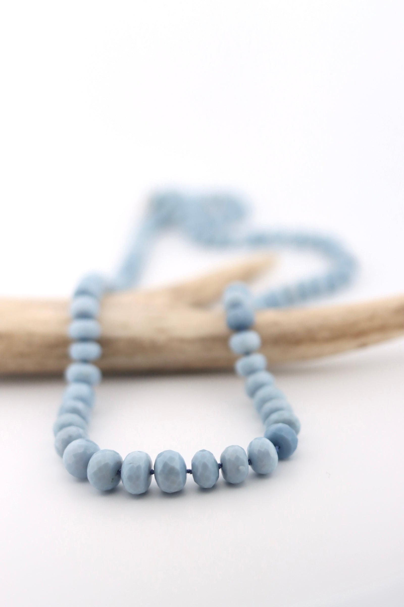 Facetted denim opal hand knotted on silk necklace with sterling silver clasp