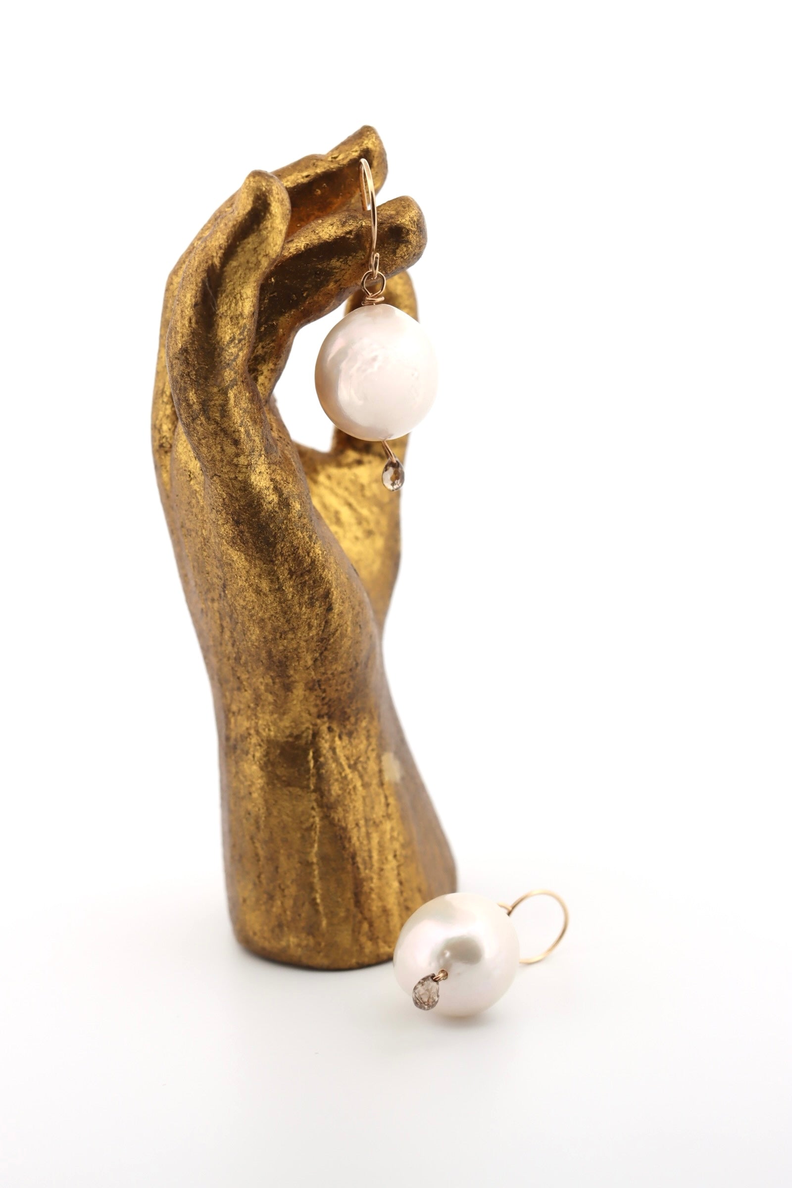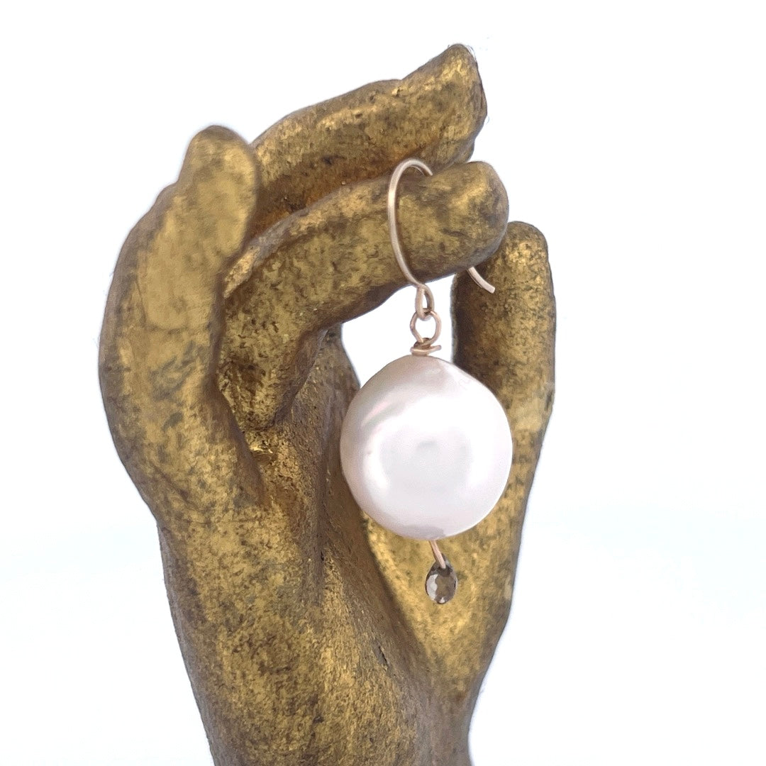 14k yellow gold white fresh water pearls with brown sapphire drops