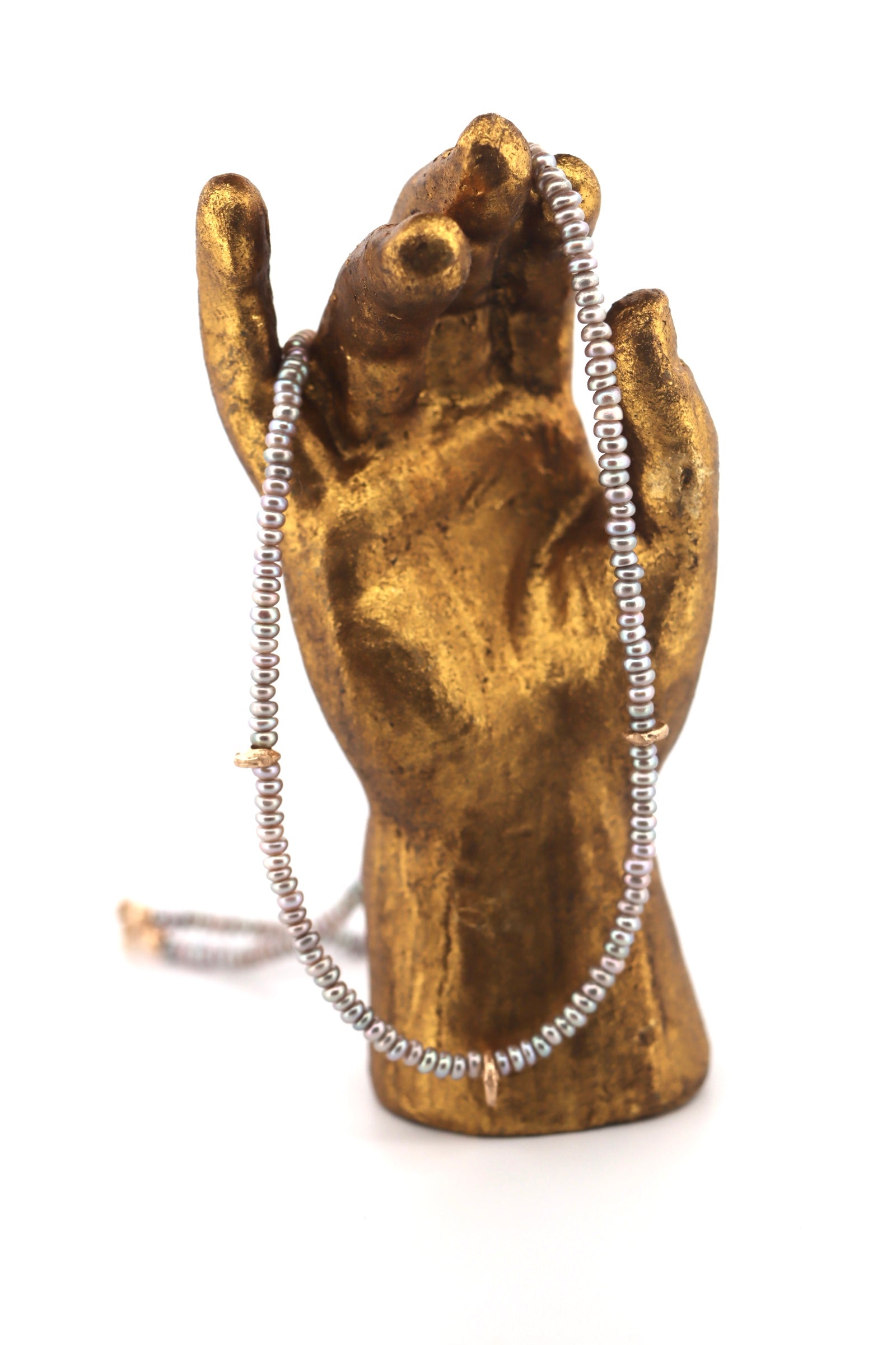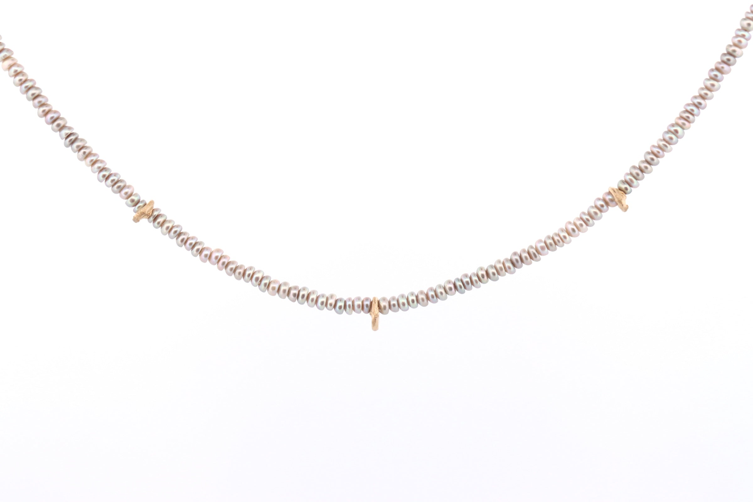 Small grey fresh water pearl necklace with 14k YG clasp and 10k YG hand casted spacer beads (3)