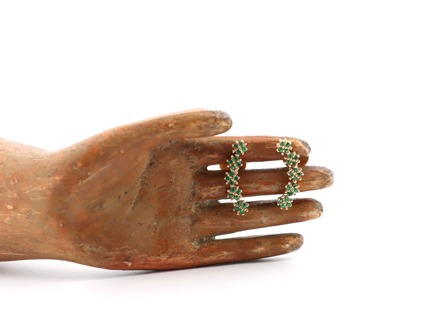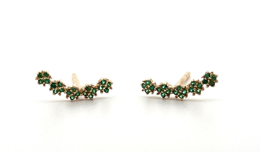 14k yellow gold and emerald curved stud earrings
