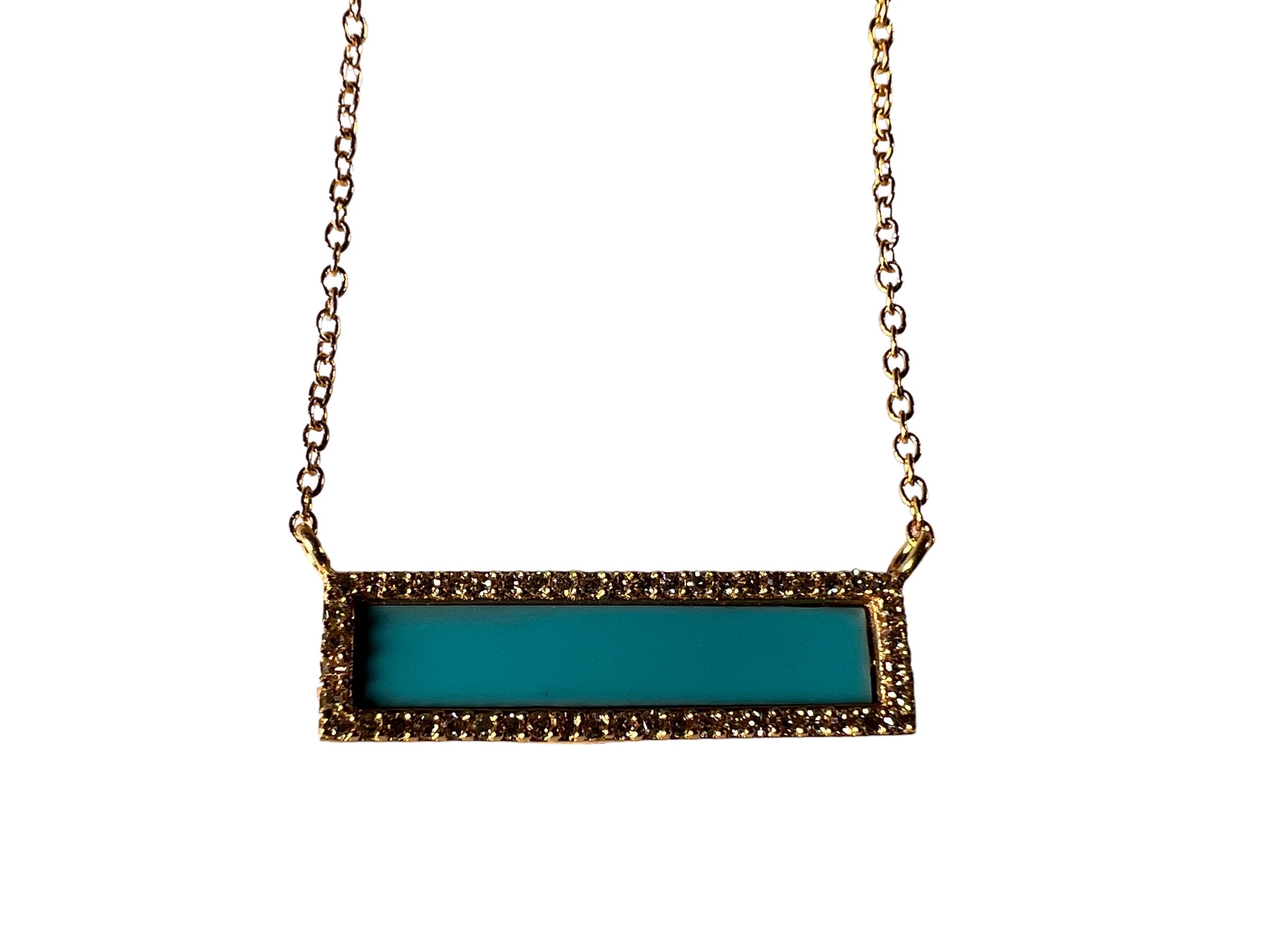 14k yellow gold turquoise inlay and white diamond bar necklace