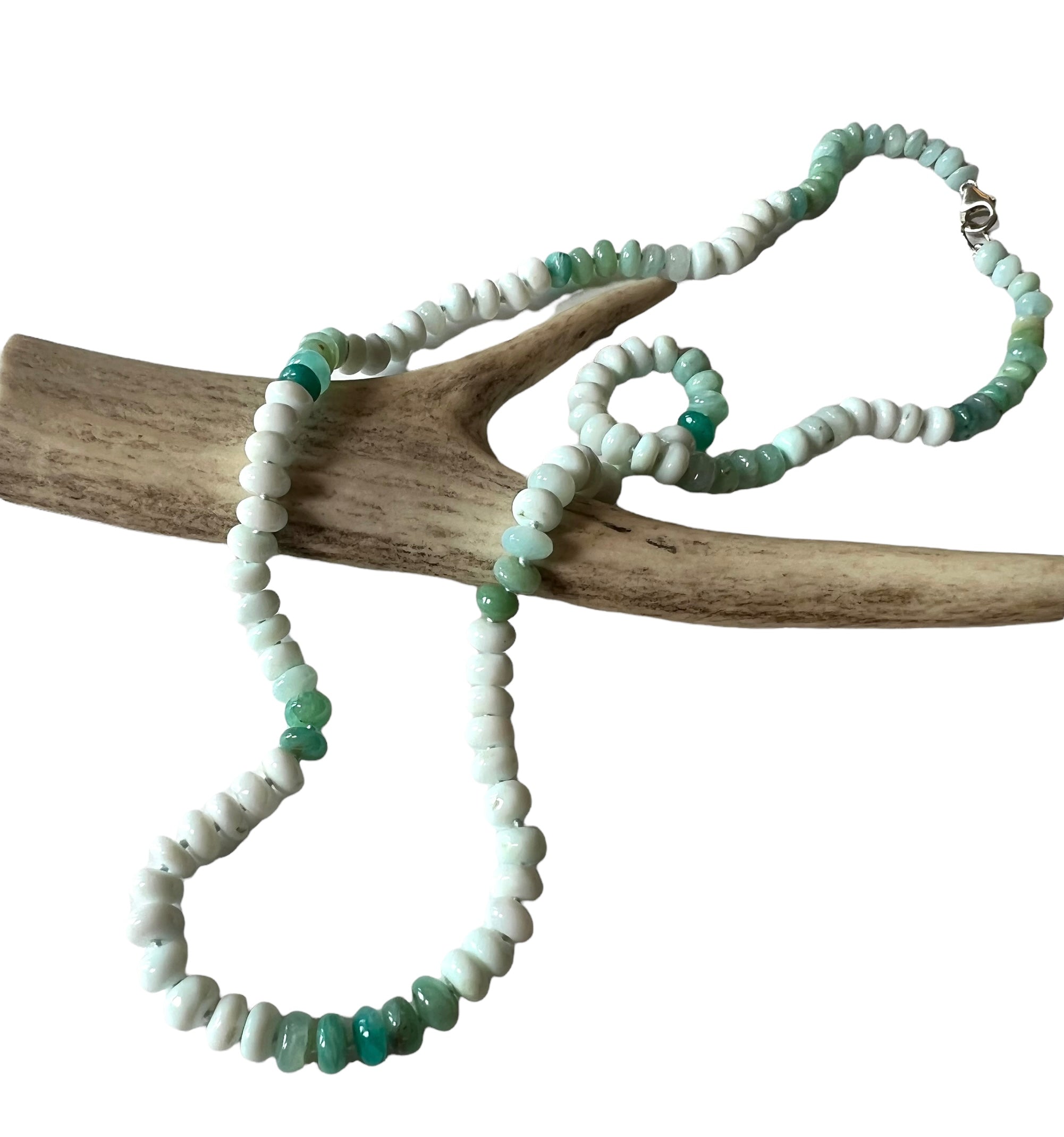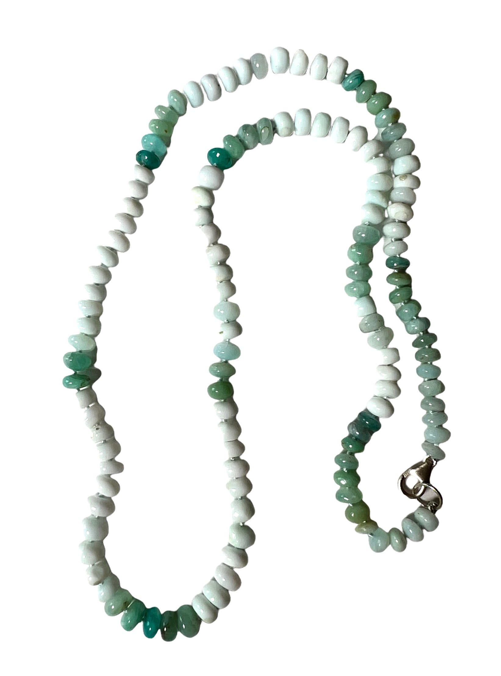 Multi hued green and white smooth round rondelle opal beads