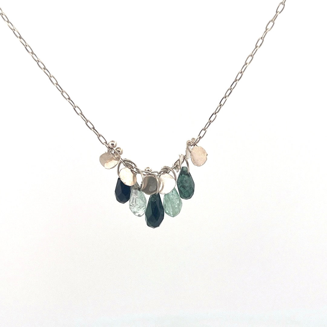 Sterling Silver hammered beading with light and dark green tourmaline.
