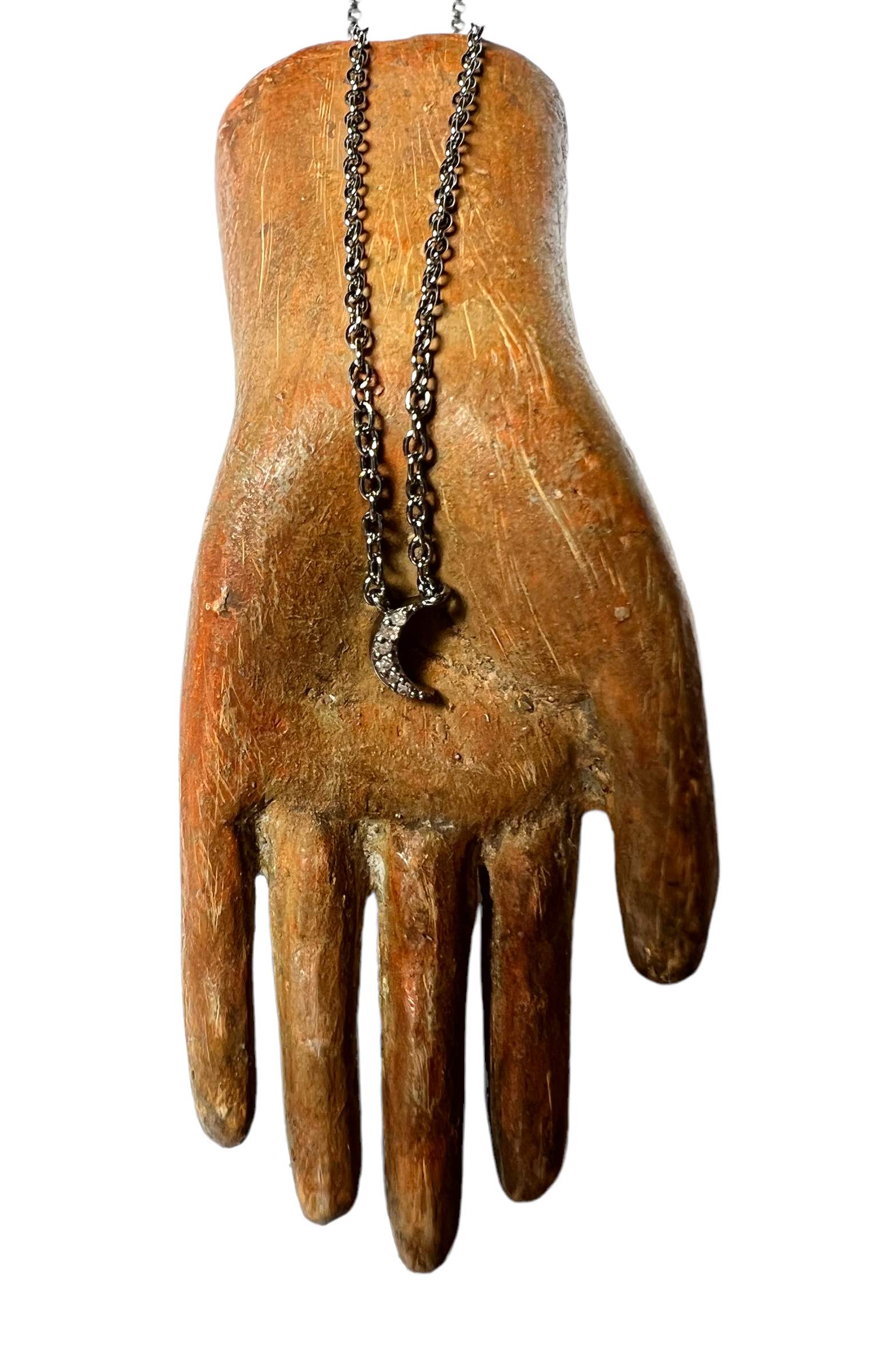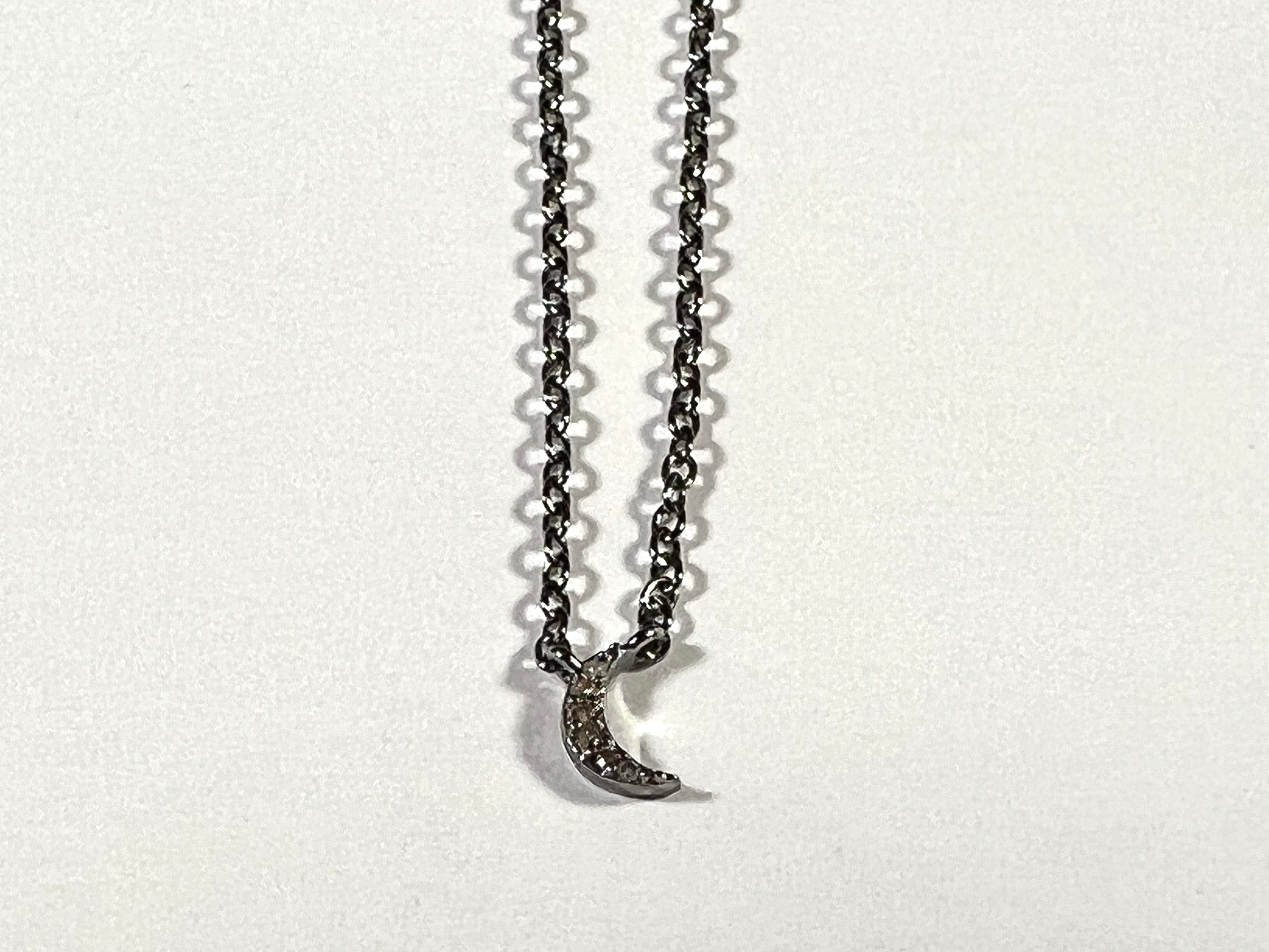 Oxidized sterling silver and white diamond mini crescent moon necklace