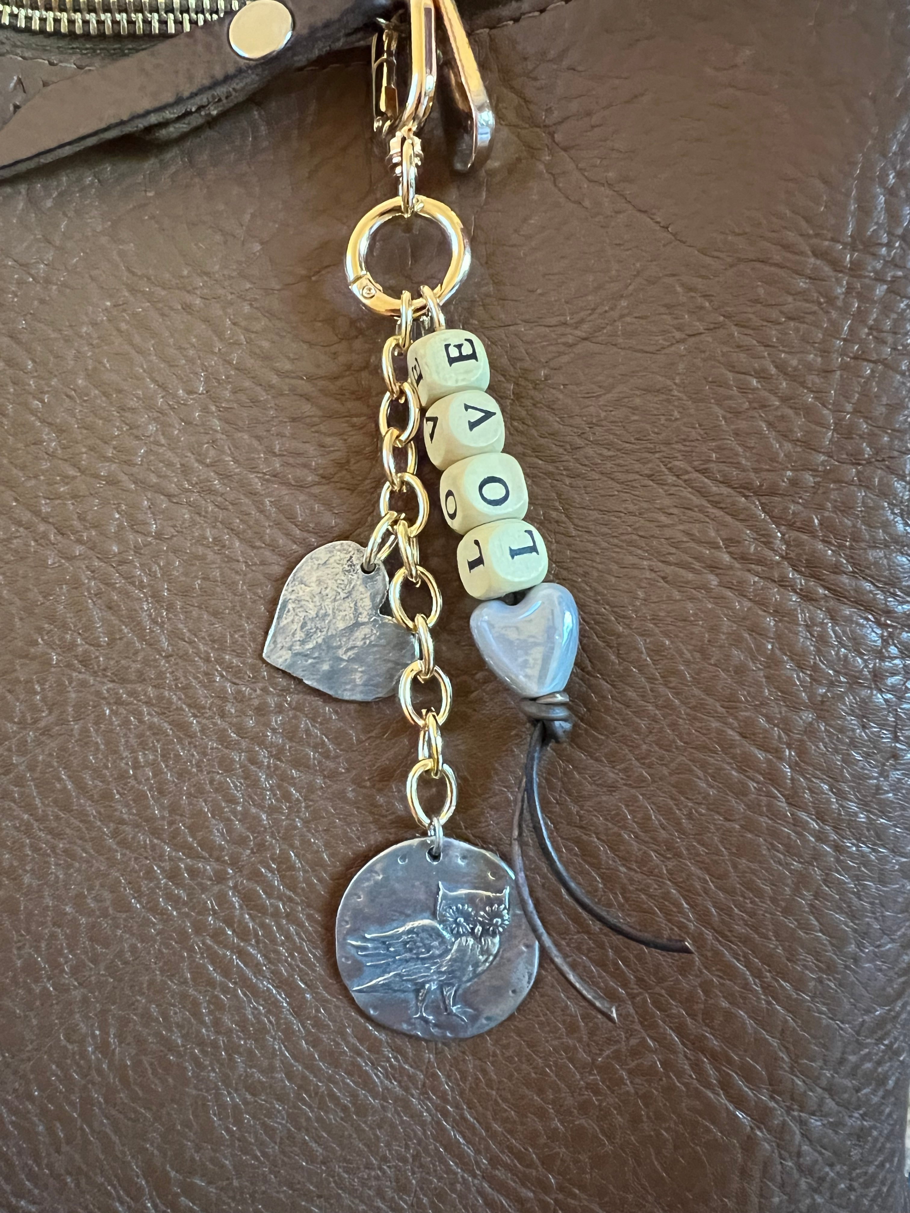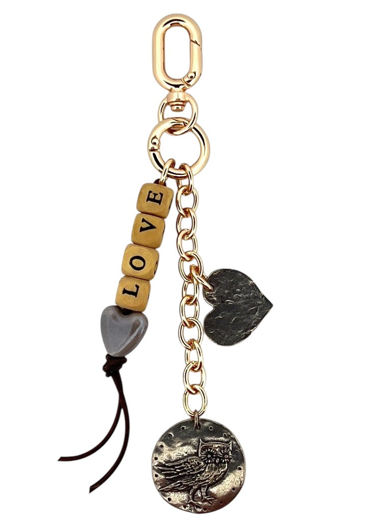 Silver Britannium Owl & heart on base metal gold chain & clip