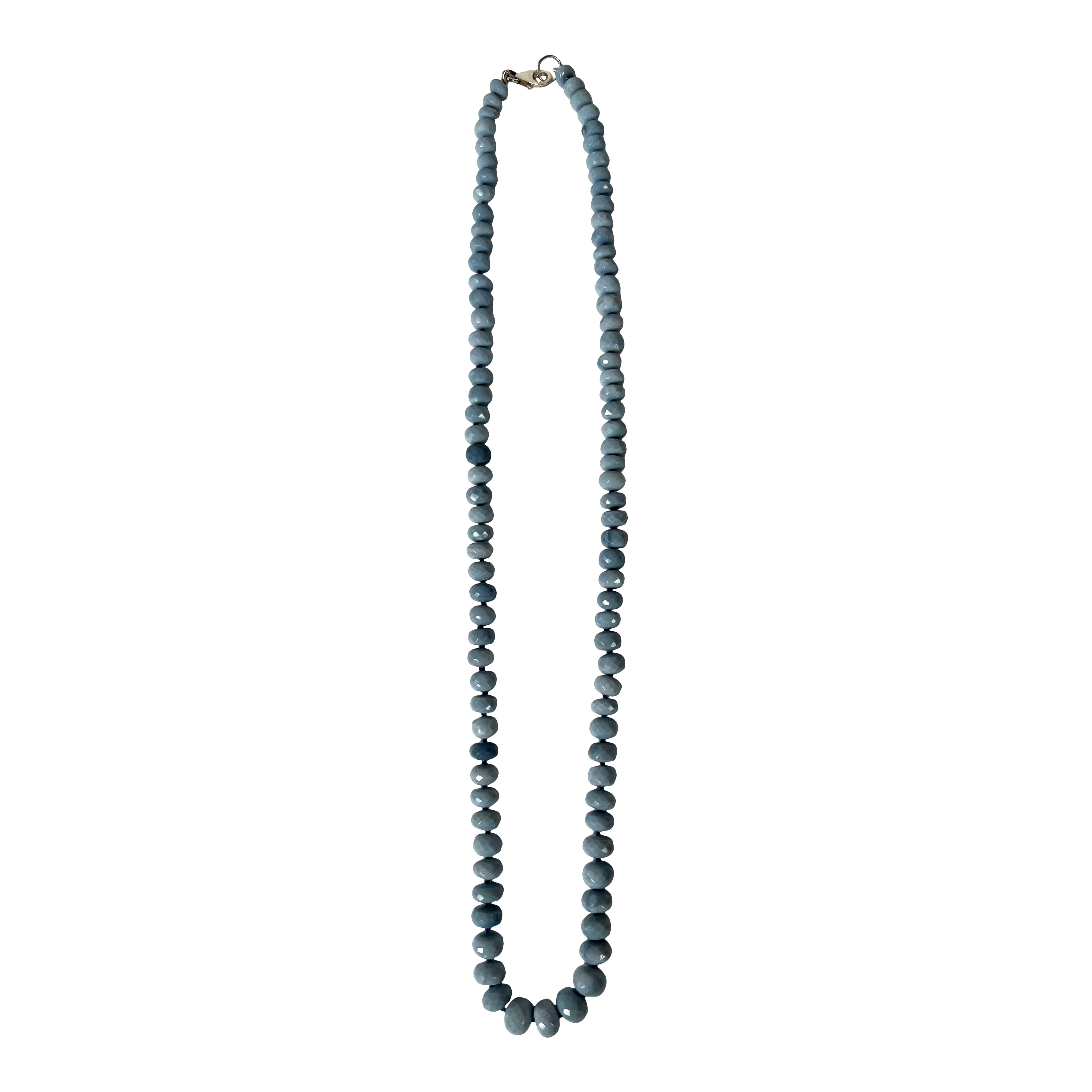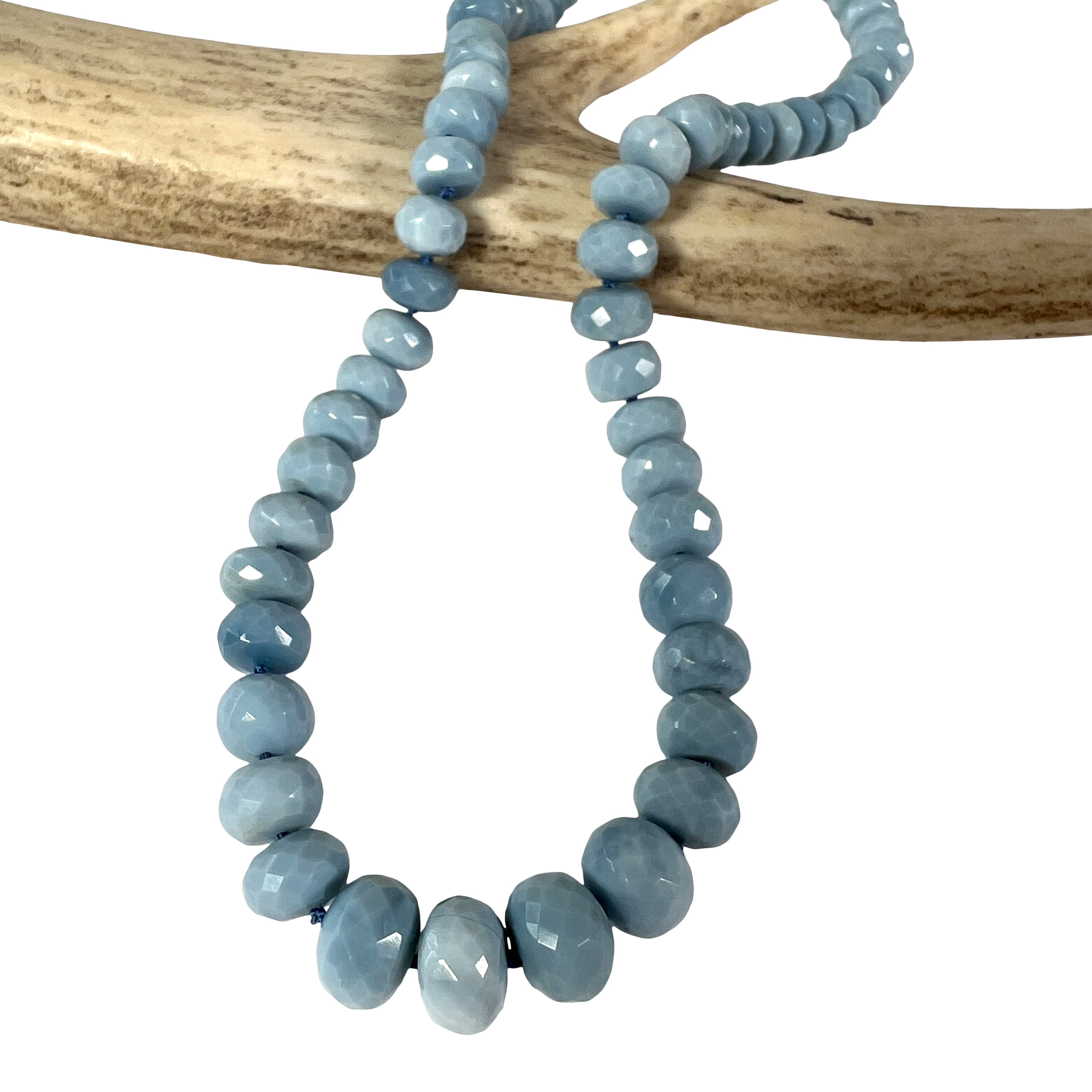 Faceted Owyhee Denim Blue Opal Necklace Hand Knotted On Blue Silk Sterling Silver Clasp Stones Measure 5mm - 8mm 20" Long