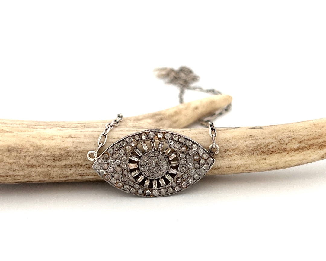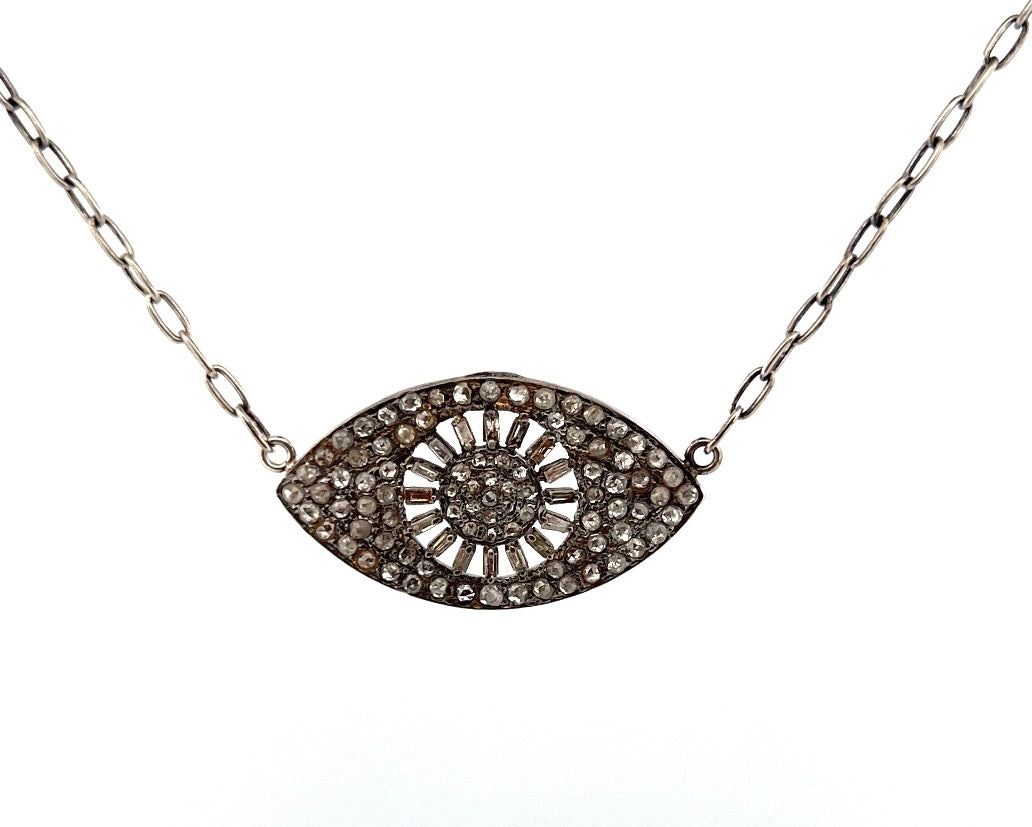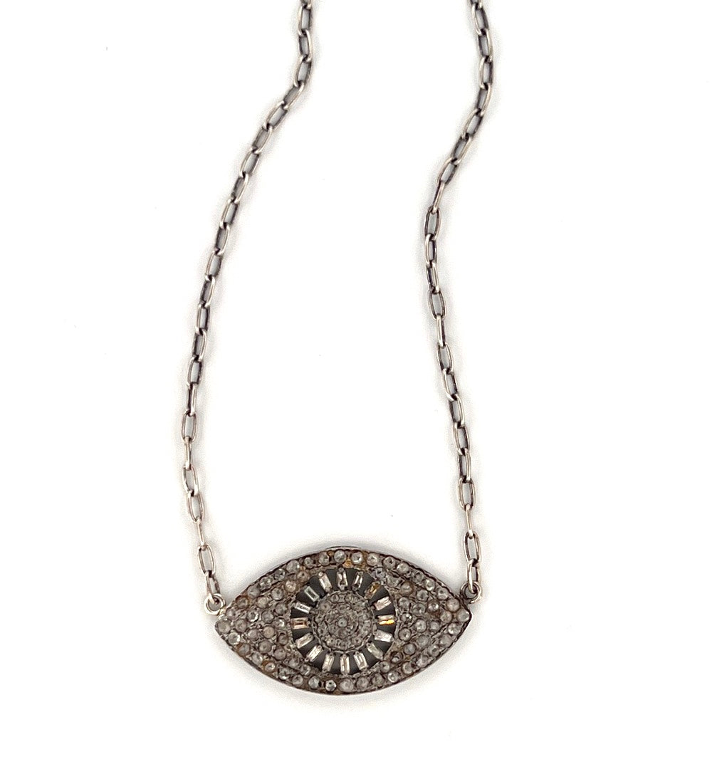 Oxidized sterling silver and white diamond pave diamond eye necklace