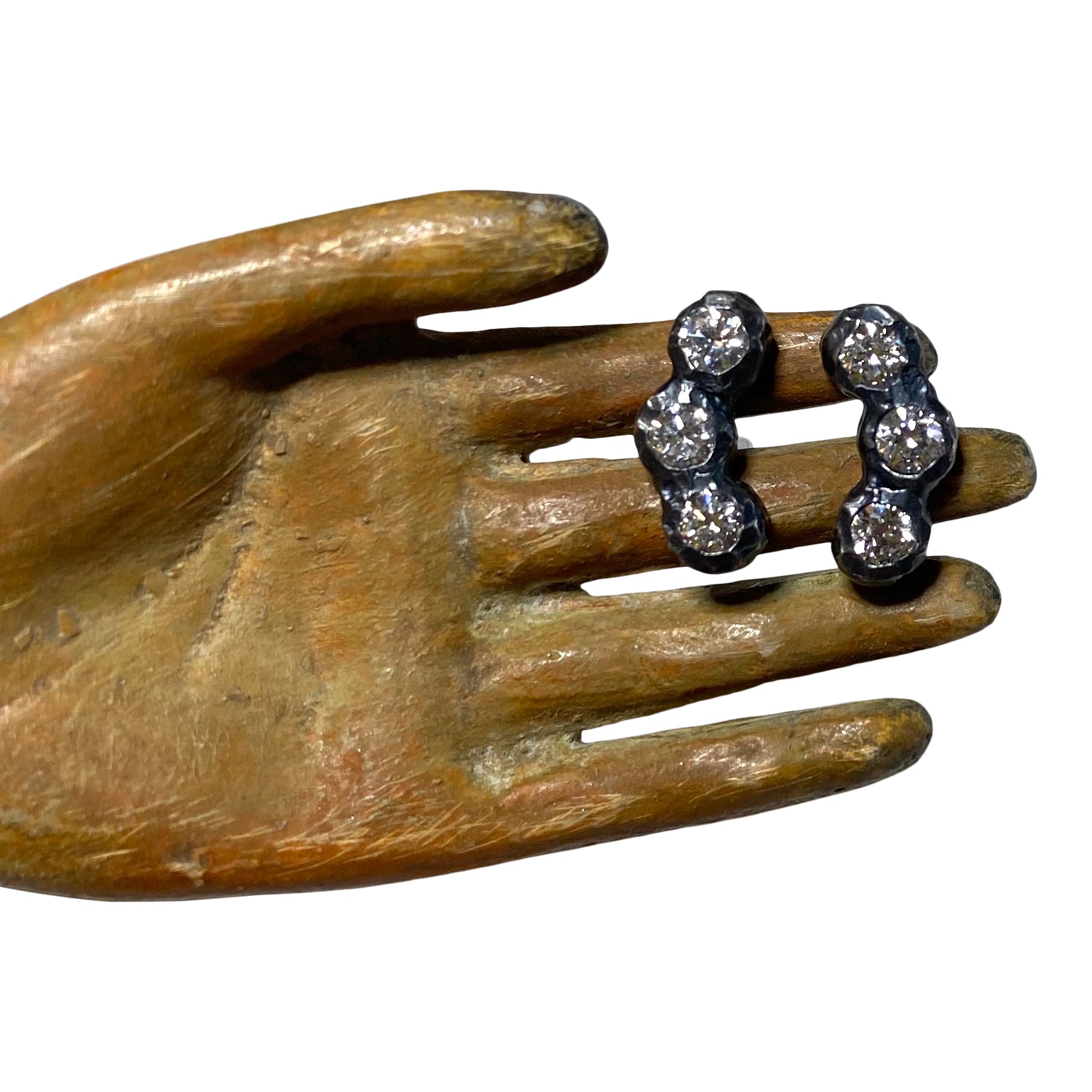 Oxidized Sterling Silver And White Diamond Bezel Set Earrings