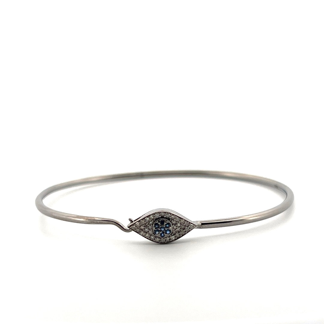 Oxidized sterling silver white diamond and blue sapphire eye bracelet