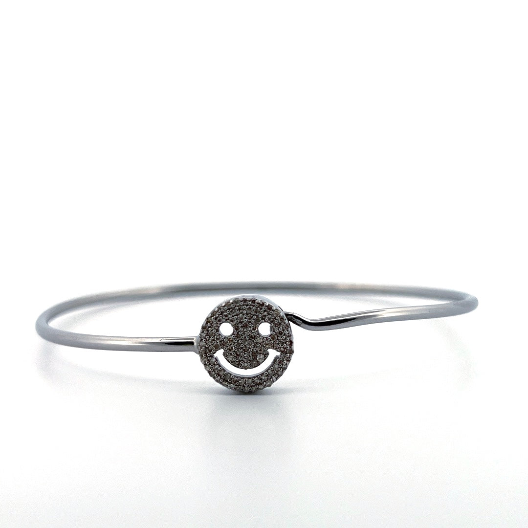 Oxidized sterling silver and white pave diamond happy smile face emoji bracelet