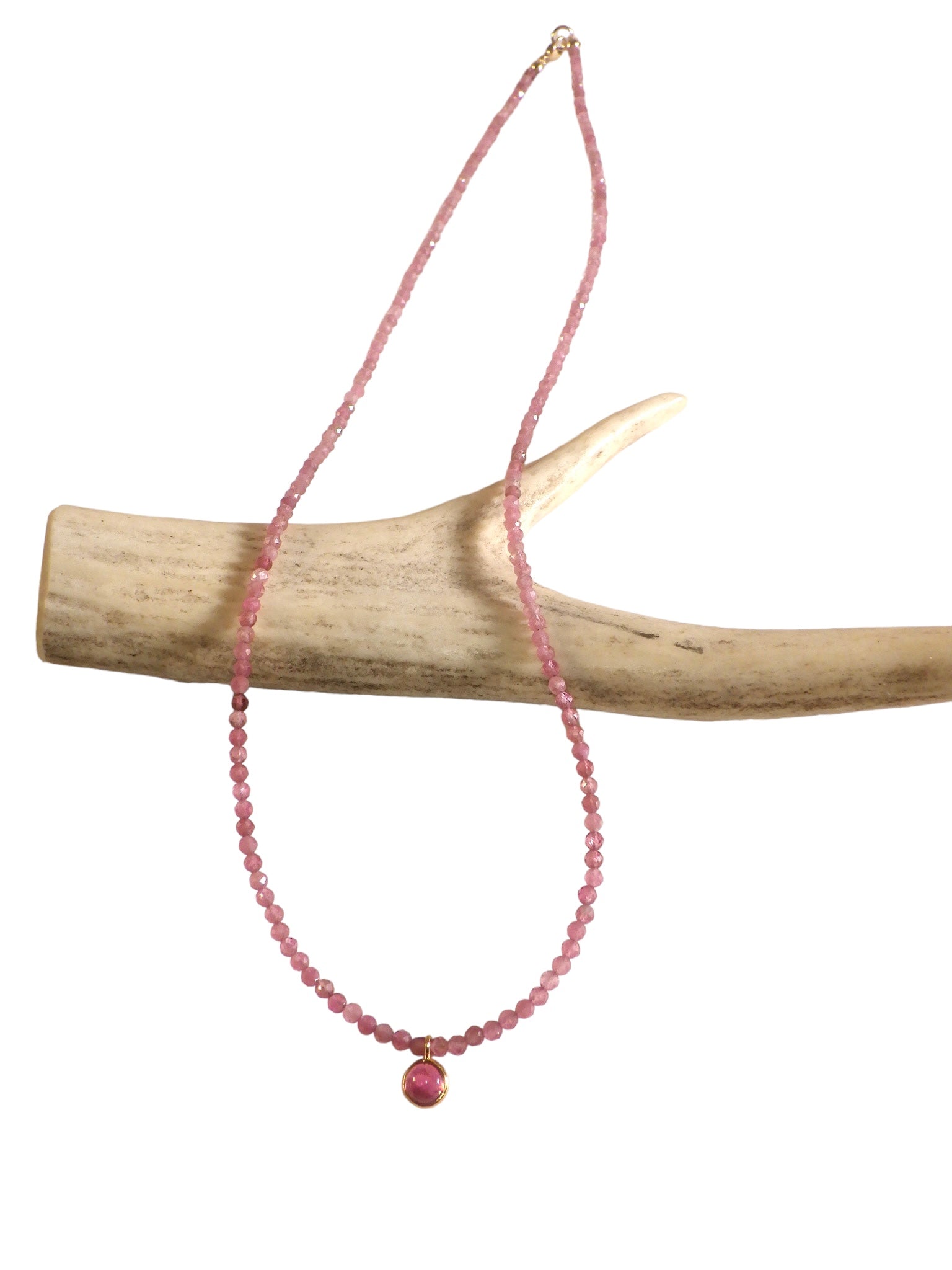 18k yellow gold smooth pink tourmaline pendant 5mm
