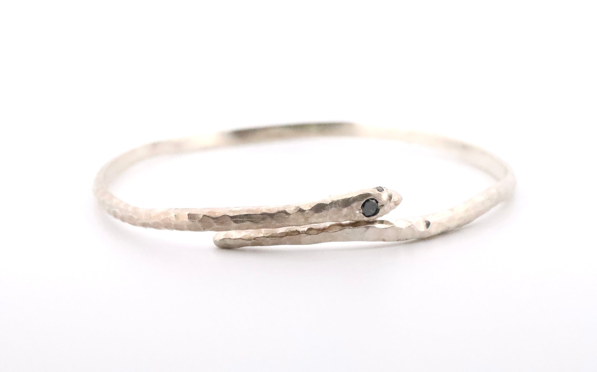Sterling silver hammered snake bracelet with black diamonds (head & eyes)