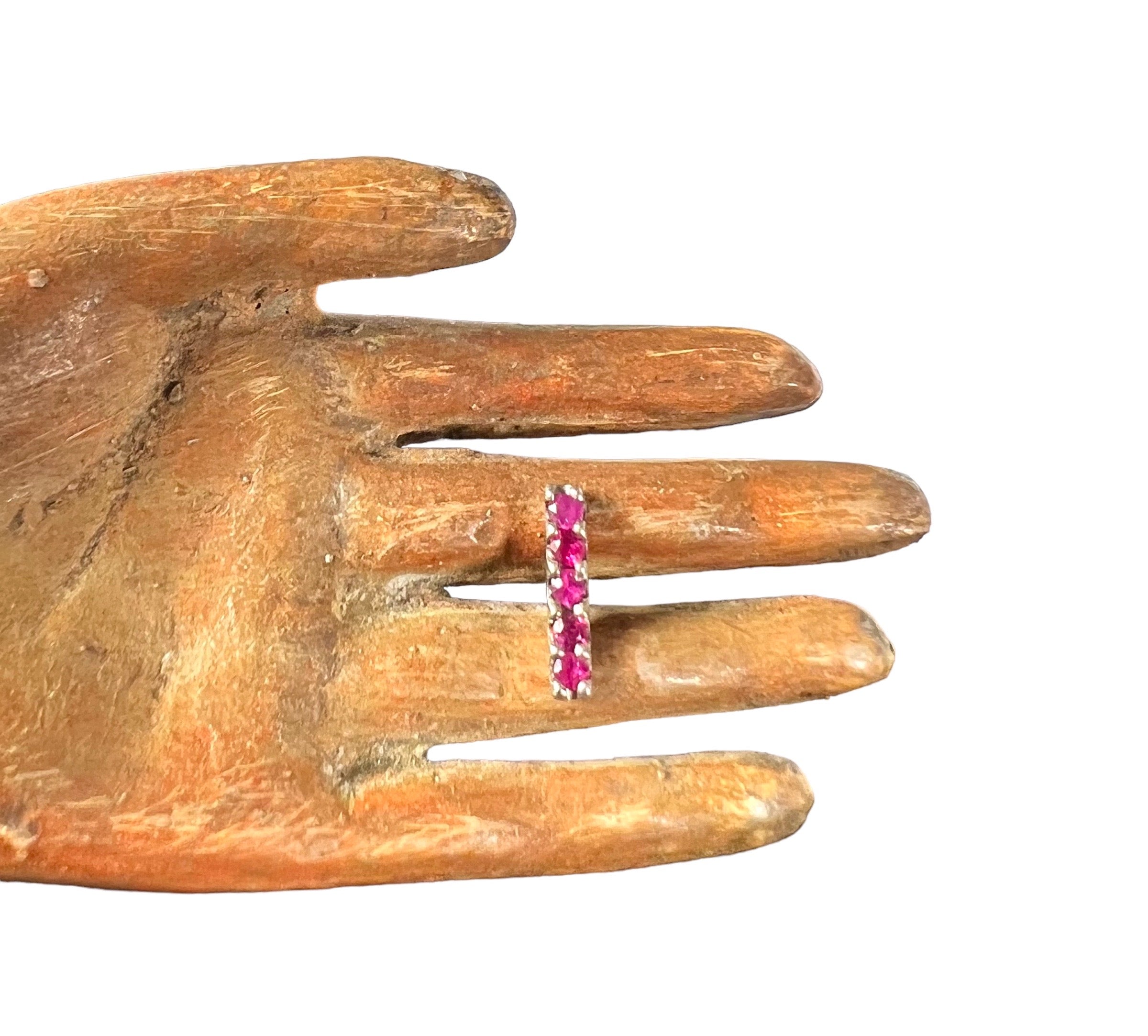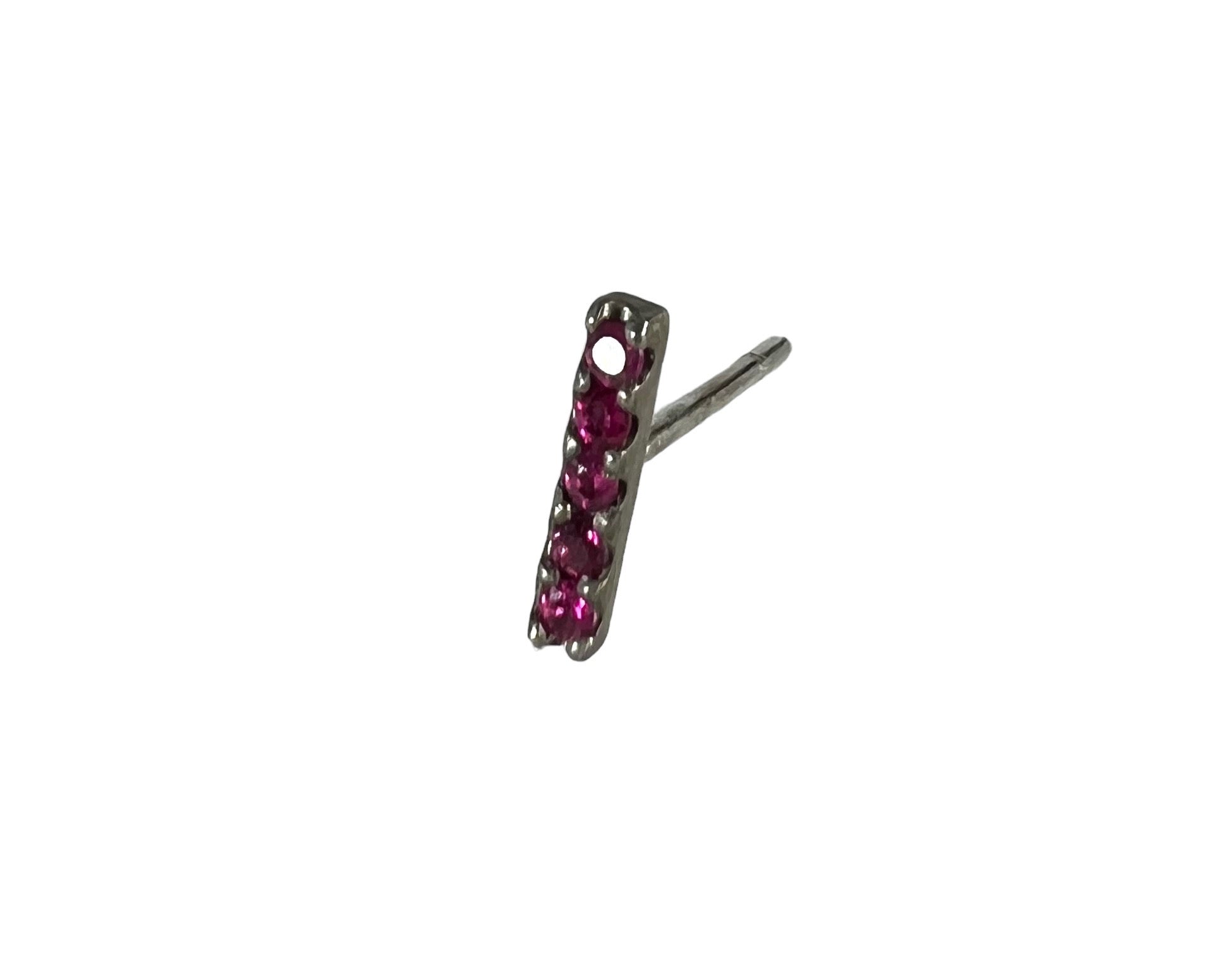Sterling silver mini bar stud earring with pink sapphire