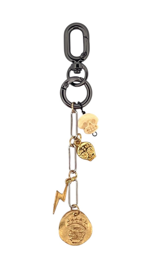 Gold plated Britannium skull disc, skull & bolt