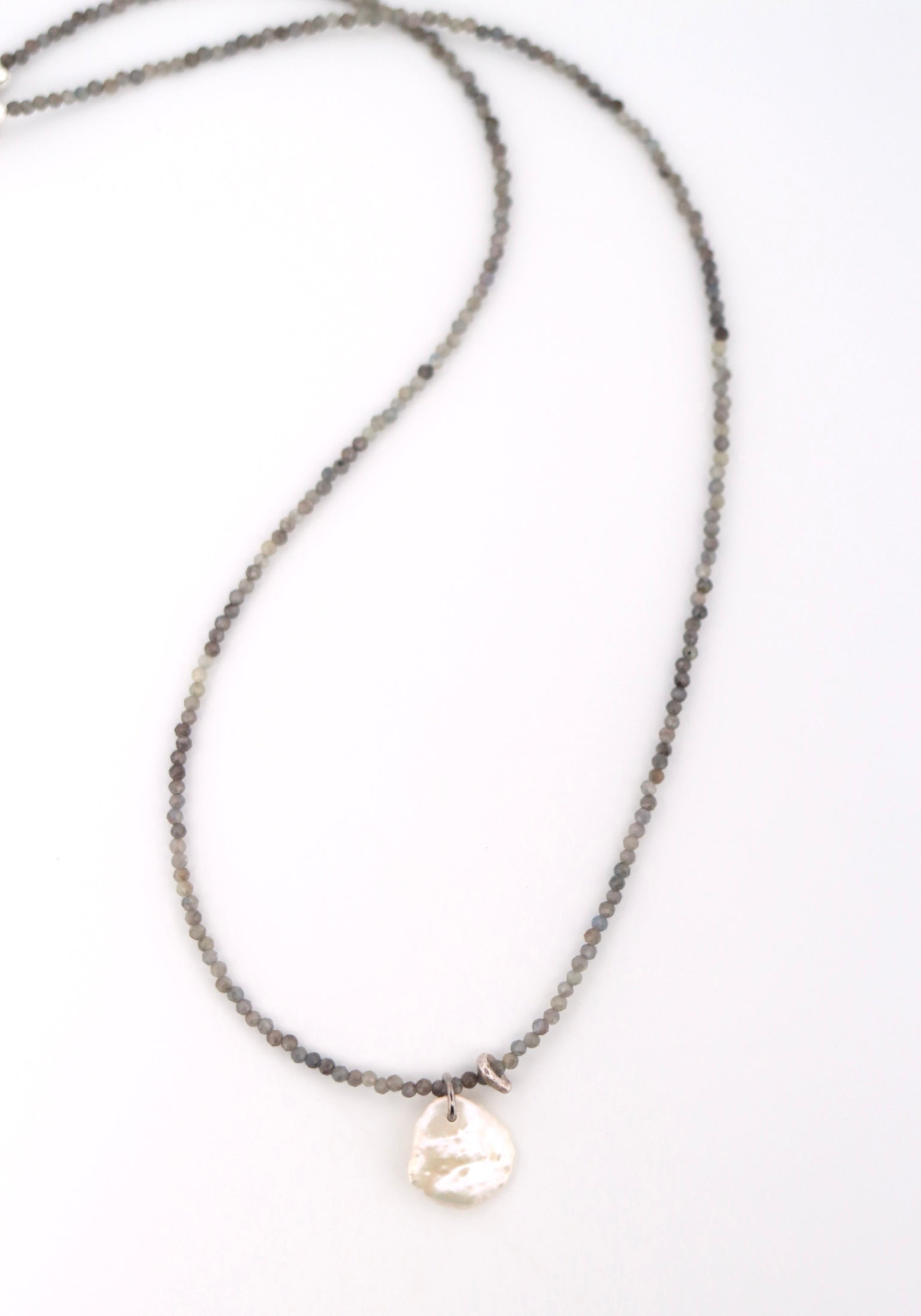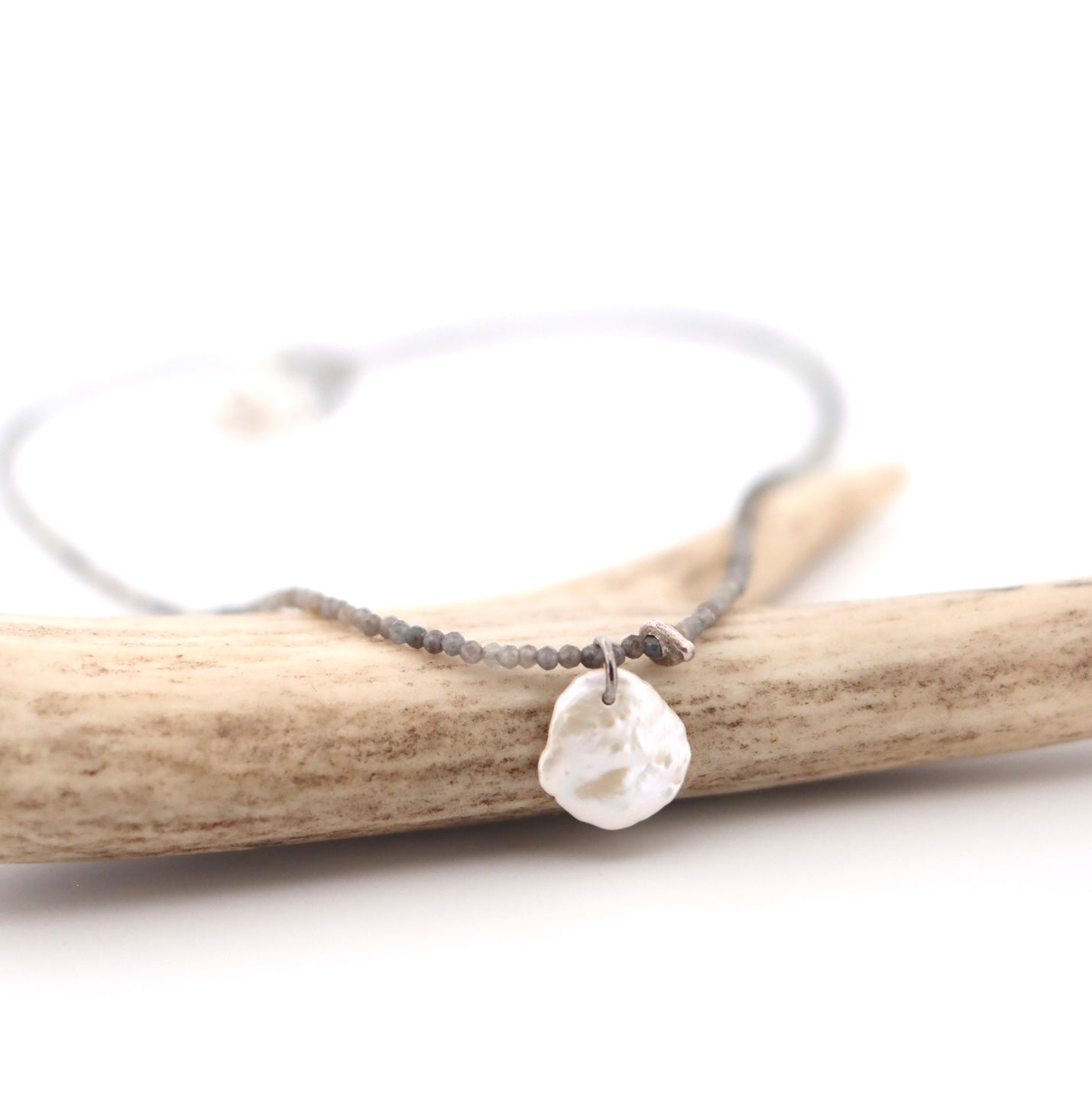 Facetted smokey quartz with fresh water pearl and hand casted sterling silver bead