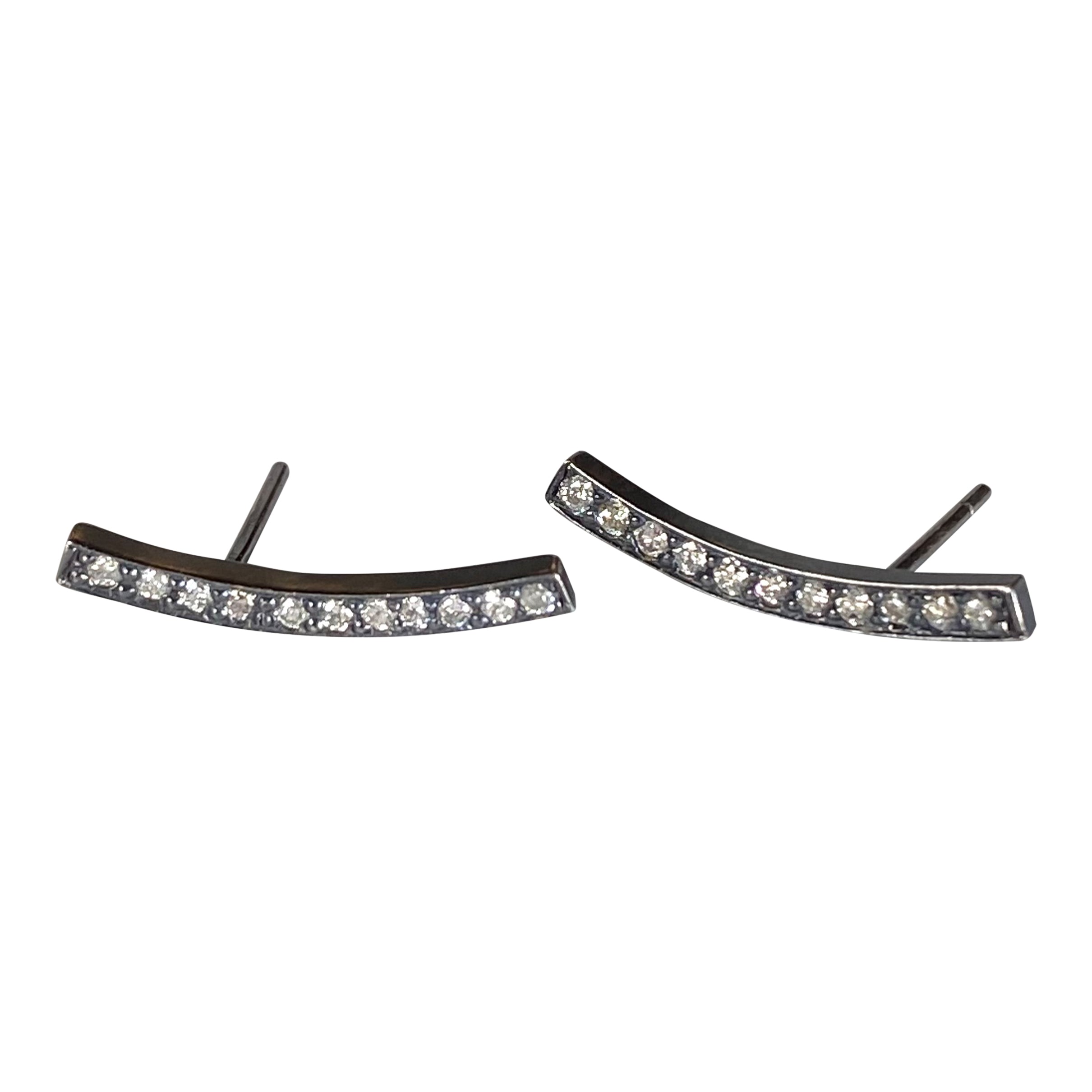 Oxidized Sterling Silver & White Diamond Curved Bar Earrings