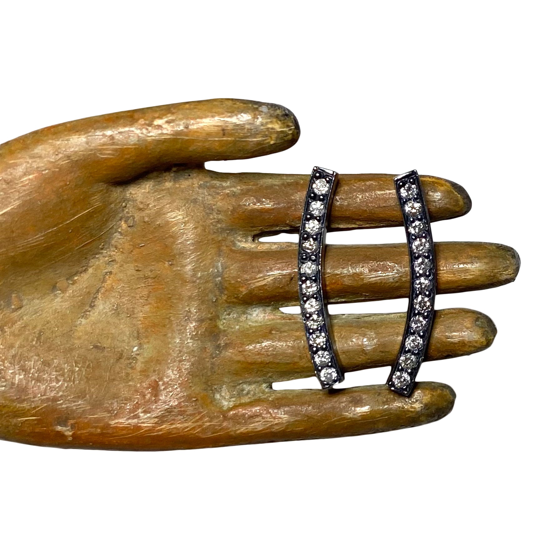 Oxidized Sterling Silver & White Diamond Curved Bar Earrings Approximately 3/4" Long