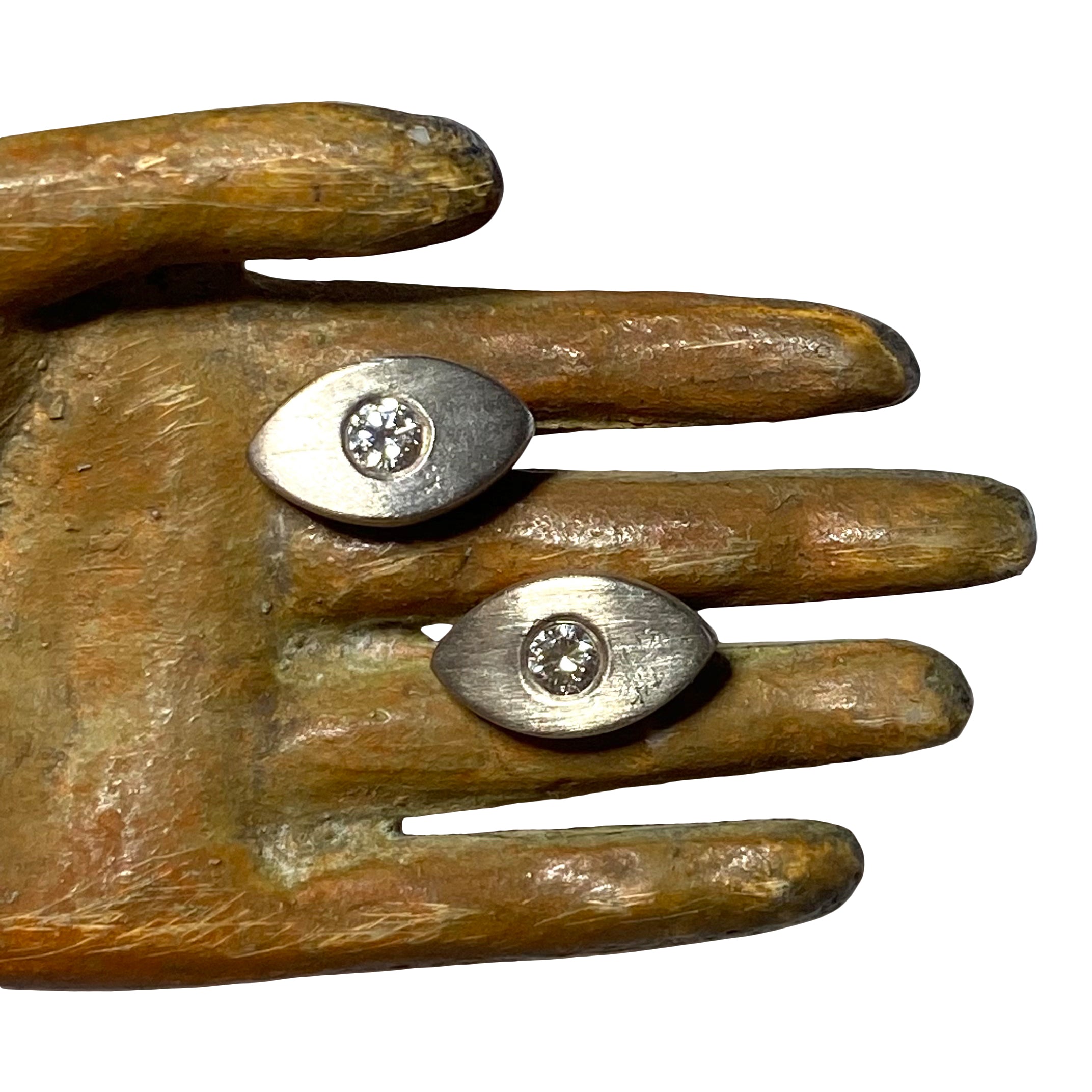 sterling Silver And White Diamond Eye Stud Earrings. matte Finish 8mm Length - 5mm Wide - 2mm Thick