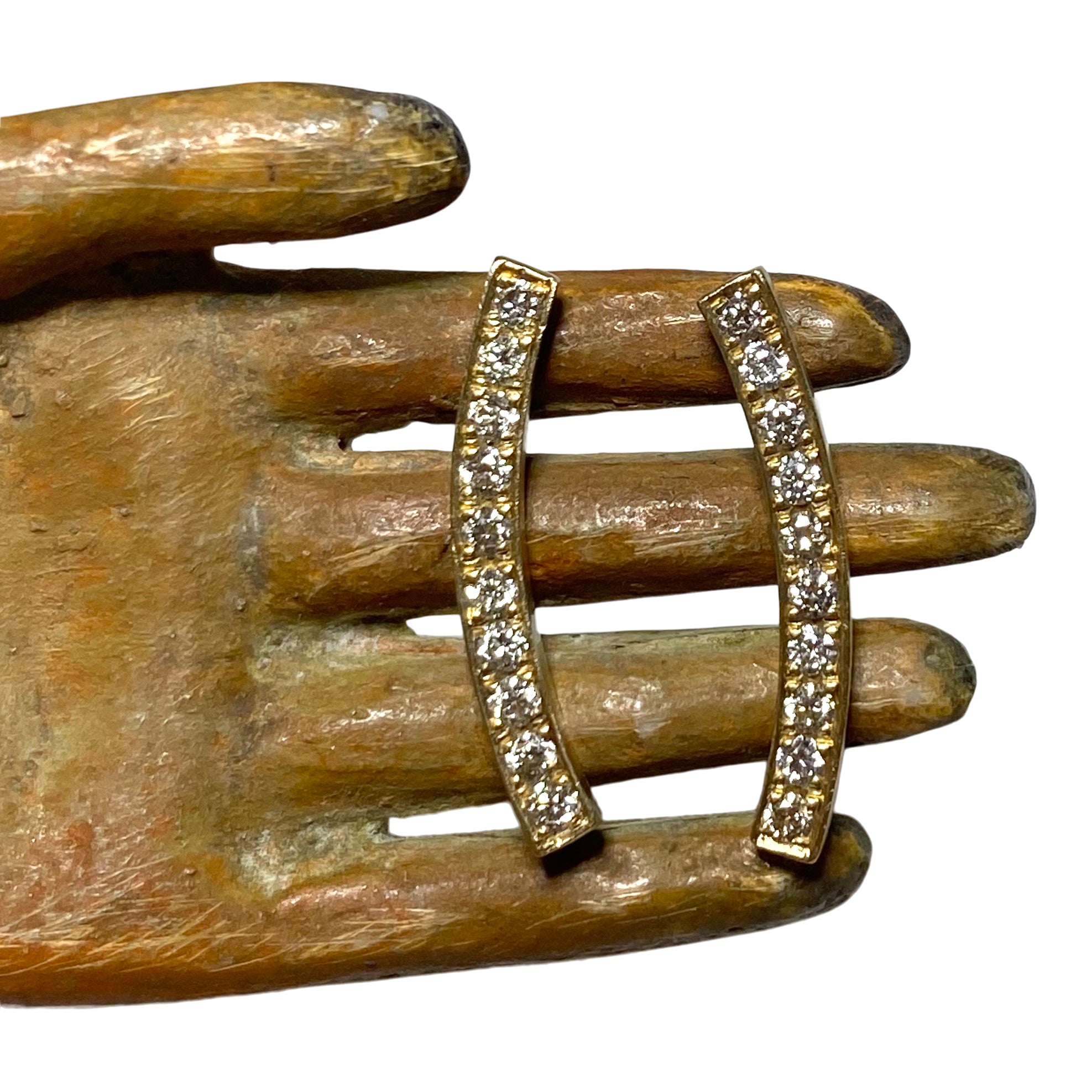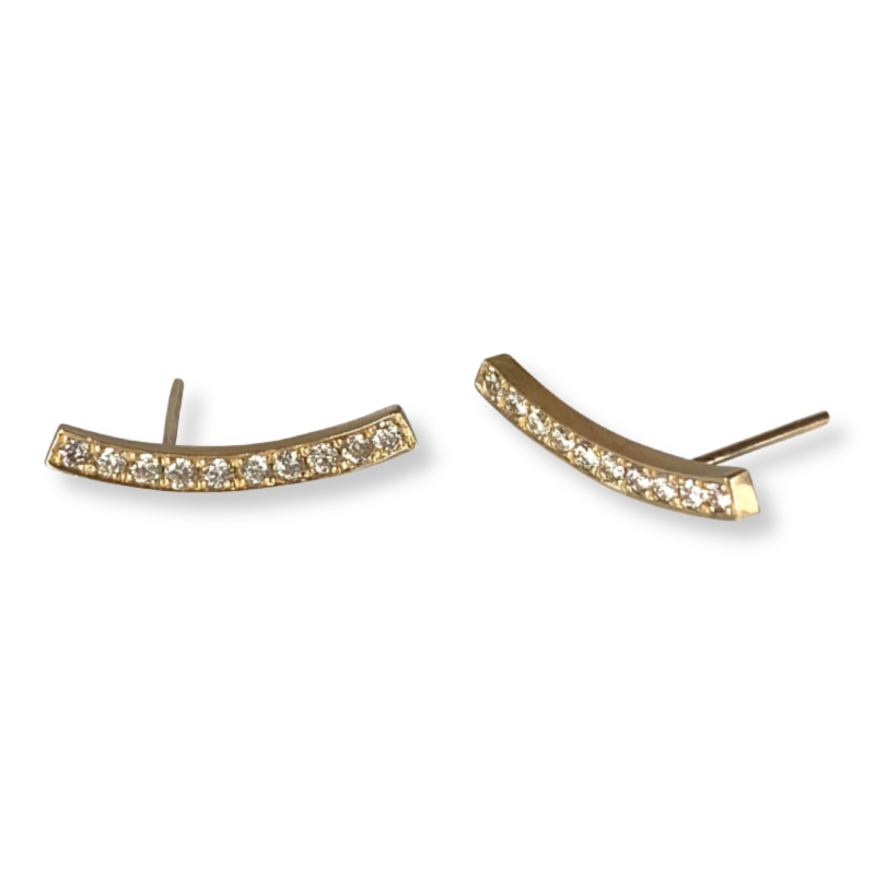 14k Yellow Gold And White Diamond Curved Bar Earrings