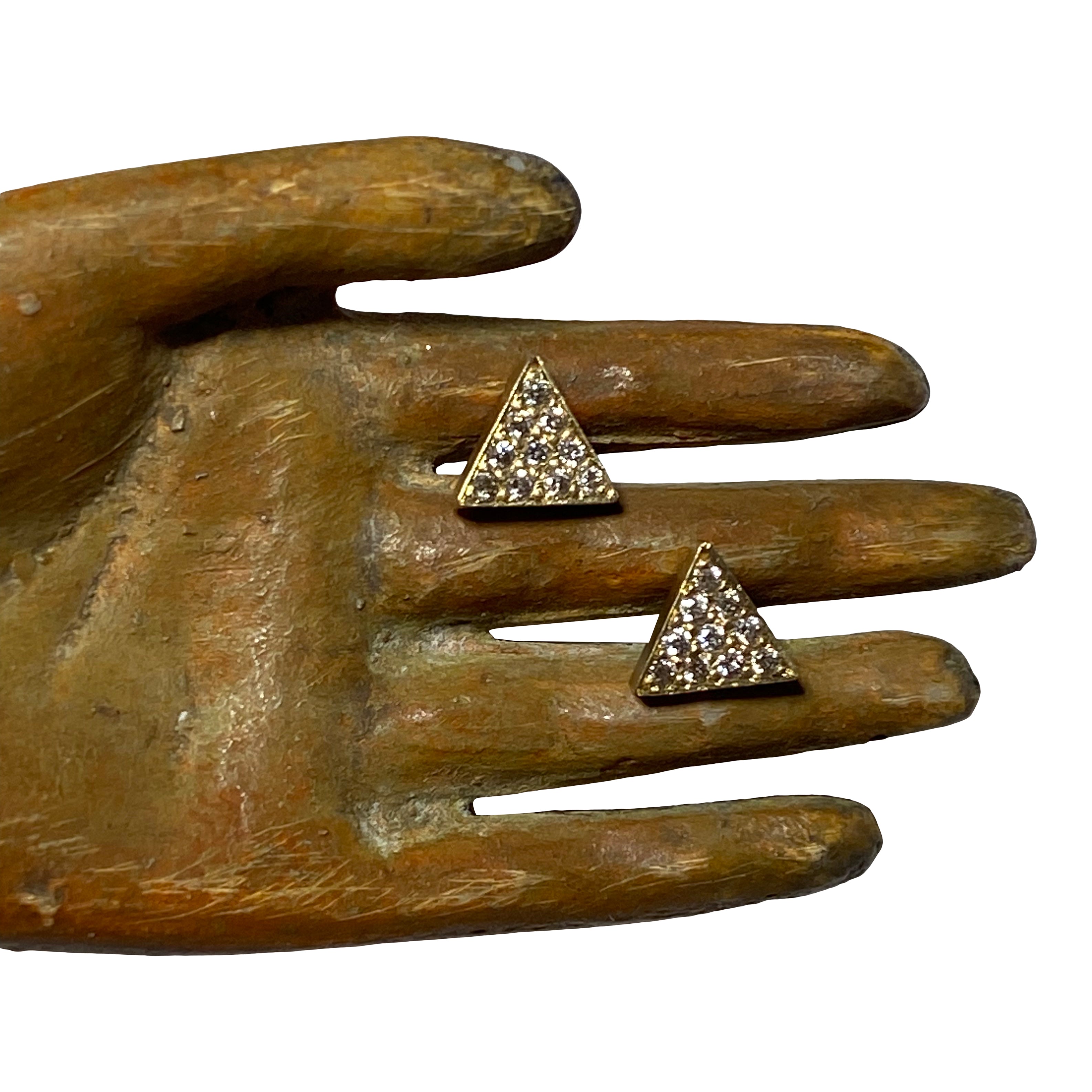 14k Yellow Gold Pave White Diamond Triangle Stud Earrings